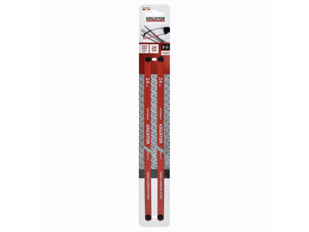 Potřebuje vyměnit pilový plátek na vaší pile? Tyto 2 pilové plátky KRTH80604 od Kreator pasují na pily, které používají plátky o délce 300 mm. Jsou vyrobeny z materiálu HIGH CARBON STEEL, mají 24 zubů na palec (TPI) a jsou ideální pro řezání PVC, hliníku a dalších kovů.