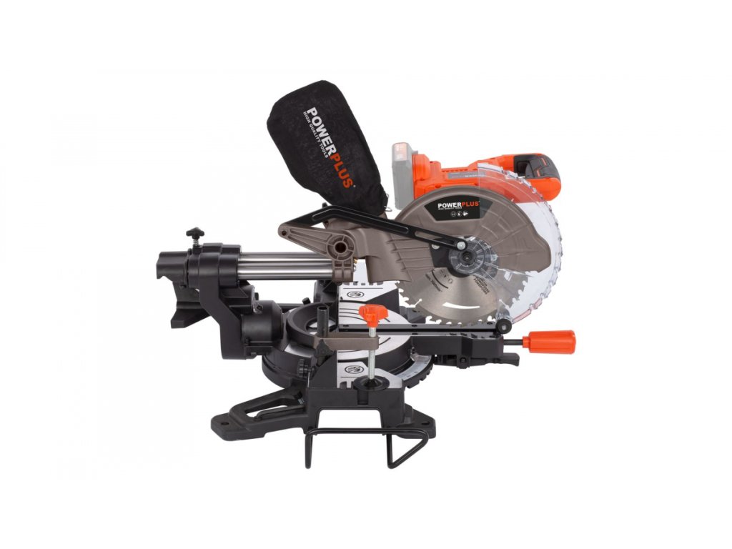 ŘEZNÁ KAPACITA90st - 90st - 60 x 220 mm45st (vlevo) - 90st - 60 x 150 mm90st - 45st - 30 x 220 mm45st (vlevo) - 45st - 30 x 150 mmAKU pokosová pila s potahem POWDP2560 od společnosti Powerplus je ideálním nástrojem pro řezání prken a podlahových lišt na míru. Protože se jedná o akumulátorový stroj, lze jej použít přesně tam, kde je potřeba a přesto má dostatek řezací síly a rychlost otáčení 3300 min-1. Stůl a sklopná hlava jsou vybaveny přesným měřítkem. To umožňuje přesně nastavit úhel řezu. Teleskopická hlava zajišťuje velkou řezací kapacitu. S řeznou kapacitou 60x220mm pro přímé řezy a 30x150mm pro 45st šikmé řezy nabízí pila velký rozsah. Výsuvná ramena nabízejí otřebnou stabilitu při práci s delšími prkny. Pomocí svorky zajistíte obrobek, tak že pilový kotouč 210 mm může vykonávat svou práci bezpečně. Dvojitý bezpečnostní spínač, ochrana proti přetížení a aretace vřetena poskytují potřebnou bezpečnost při práci. Měkká rukojeť zajišťuje příjemný pracovní zážitek. Díky přesnému laseru, sáčku na prach a konektoru k připojení na vysavač je zaručen dokonalý výhled na linii řezu. Použít můžete baterie ze série DUAL POWER o napětí 20V a také i baterie o napětí 40V. Použití 40V baterie zajišťuje ještě delší dobu chodu stroje ve srovnání s 20V verzí.