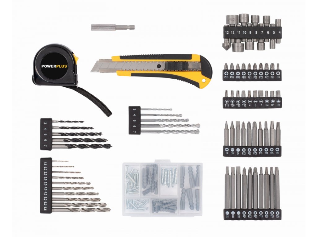 Tato 20V akumulátorová vrtačka POWX00830 od Powerplus je všestranný pomocník pro většinu šroubovacích prací v domě a kolem něj a pro lehké vrtací práce. Směr otáčení lze změnit stisknutím tlačítka. Vrtačka/šroubovák má dva převody s maximální rychlostí otáčení 400 až 1400 otáček za minutu což umožňuje stroji dosáhnout maximální kapacity vrtání prům.20 mm do dřeva a prům.8 mm do oceli. Rychloupínací sklíčidlo 10 mm zajišťuje nezbytnou jednoduchost použití. Motor poskytuje maximální utahovací moment 35 Nm. Díky 19 nastavením krouticího momentu lze stroj snadno přizpůsobit jakémukoli šroubování a vrtání. Pracovní světlo poskytuje dostatek světla pro dobrou práci i na špatně osvětlených místech. Vrtačka/šroubovák se dodává v praktickém úložném kufříku s celkem 134 příslušenstvím. Součástí stroje jsou 2 baterie a rychlonabíječka. Každá baterie má kapacitu 1300 mAh. Součástí je také rozsáhlá sada šroubovacích bitů a vrtáků, praktické ruční nástroje, jako je nůž a měřicí páska, a sada šroubů a hmoždinek.
