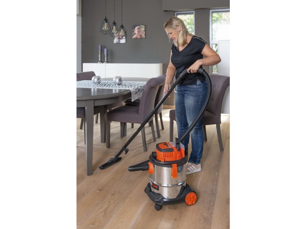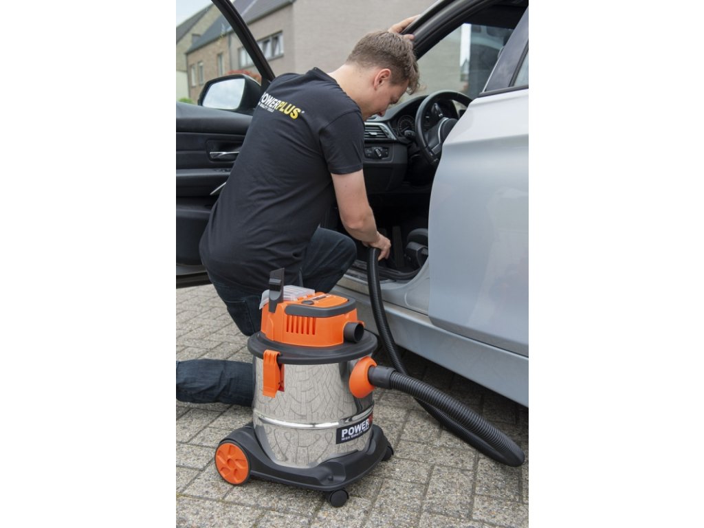 Tento Aku vysavač Dual Power mokro / sucho vám umožní vyčistit celý dům, aniž byste museli hledat další el. zásuvku. Je tedy ideálním nástrojem pro vnitřní i venkovní použití. Zařízení je schopné vysávat nebo foukat. Funkce foukání vám pomůže například s odstraněním listí z terasy nebo balkonu. Vysoce účinný filtr shromažďuje i ty nejjemnější částice prachu. Díky nádrži z nerezové oceli 20 l vám POWDP6040 poskytne pevný vysavač. Díky kolečkové základně a flexibilní hadici o délce 1,5 m můžete pohodlně pracovat. K dispozici jsou různé nástavce, jako je podlahový kartáč, kartáč 2 v 1 a 3dílná trubka pro větší pracovní pohodlí.