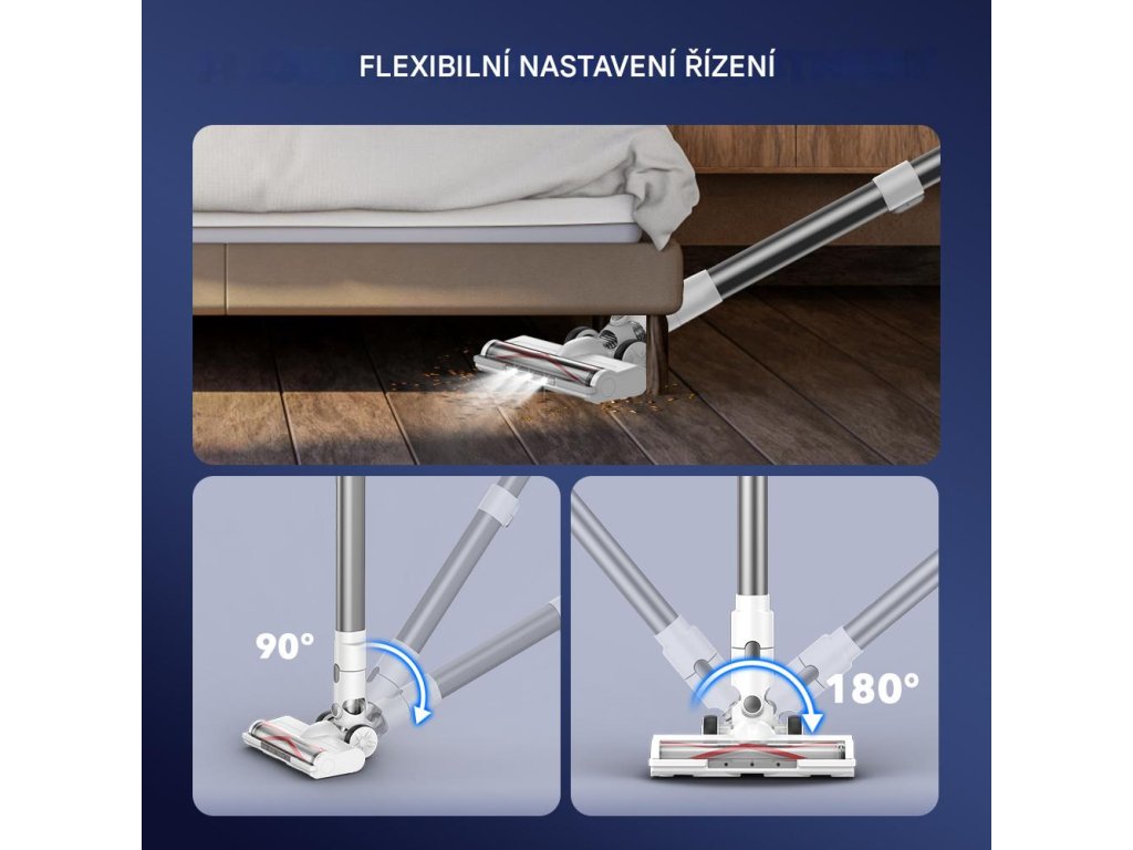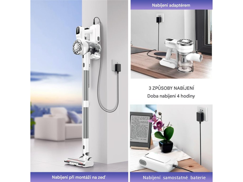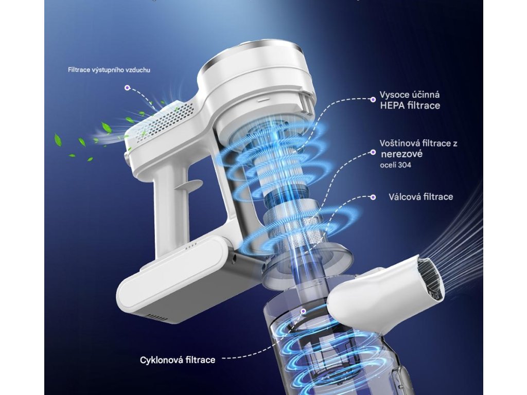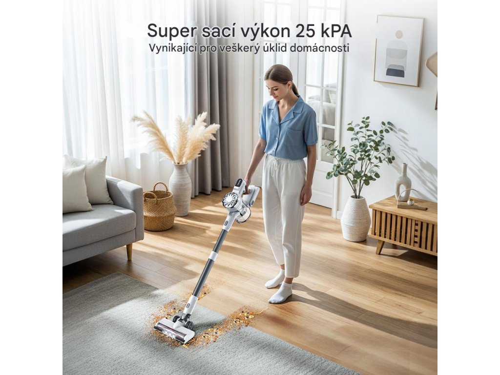 Všestranný tyčový vysavač Teendow V8 PRO. Tento vysavač je ideální volbou pro ty, kteří hledají spolehlivého pomocníka pro úklid domácnosti s důrazem na efektivitu a pohodlí. Tento vysavač dokáže vyčistit všechny povrchy ve vaší domácnosti. Disponuje 5stupňovým filtračním systémem, který zachytí až 99,99 procent prachu a alergenů, což zajišťuje čistější a zdravější prostředí. Se sacím výkonem 25 kPa je velmi výkonný a efektivní při úklidu. Díky vyměnitelné baterii můžete vysávat až 35 minut na jedno nabití. Je lehký a snadno se s ním manipuluje, což usnadňuje úklid v celém domě. Lze jej nabíjet třemi různými způsoby, což zvyšuje pohodlí a flexibilitu používání. Hlavici lze nastavit až do úhlu 180 stupňů, což umožňuje snadný přístup i do těžko dostupných míst. Vysavač je vybaven omyvatelnou nádobou na prach a filtrem s nenáročnou údržbou.