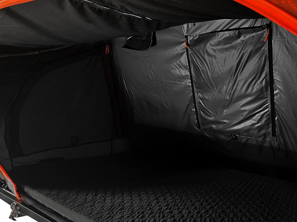 Uvnitř se nachází komfortní pěnová matrace o rozměrech 195 x 117 x 7,5cm se snímatelným potahem, kterou lze snadno vyjmout a vyčistit. Samozřejmostí je antikondenzační podložka a vnitřní izolační vrstva, které pomáhají udržet suché a příjemné prostředí i při chladnějších nocích.