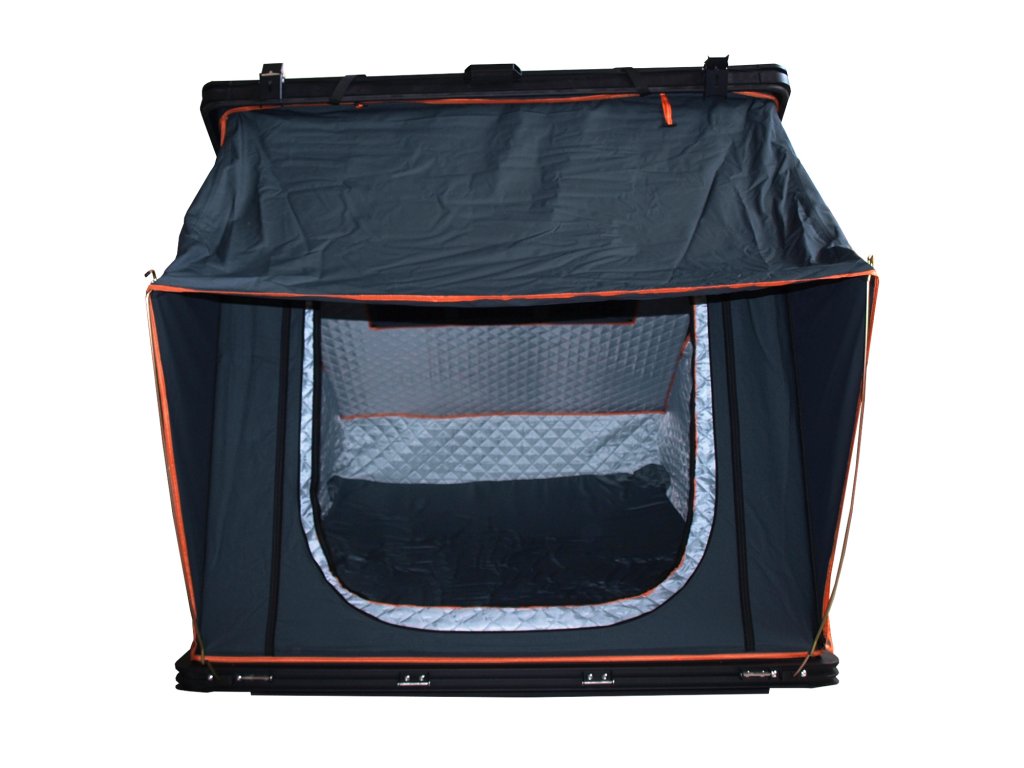 Celohliníkový zvednutý trojúhelník RTT • Vodní sloupec: PU 3000 mm • Počet osob: 2-3 • Rychlá montáž • Výbava: pěnová matrace, antikondenzační podložka, izolační vrstva, moskytiéry • Integrovaný elektrický rozvod (Big Anderson, USB-A, USB-C, cigaretová zásuvka) • LED světlo (LED pásek) • Hmotnost: 85kg • Rozměry v rozloženém stavu: 210 × 144,5 × 150 cm