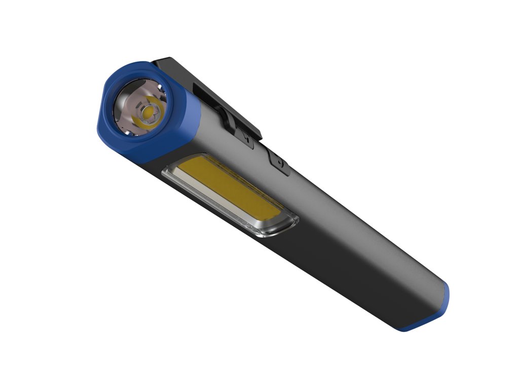 Svítivost 180 lm (SMD) – 300 lm (COB) • barva světla 5500–7500K • zdroj světla SMD + COB • kapacita baterie 3,7V / 650mAh • doba nabíjení 2 hodiny (USB-C) • provozní čas až 2 hodiny (SMD a COB) • odolnost IPX0 / IK07 • kompaktní tvar ve velikosti propisky • snadné přepínání režimů • hmotnost 55 g • intuitivní ovládání s nastavitelnou intenzitou světla