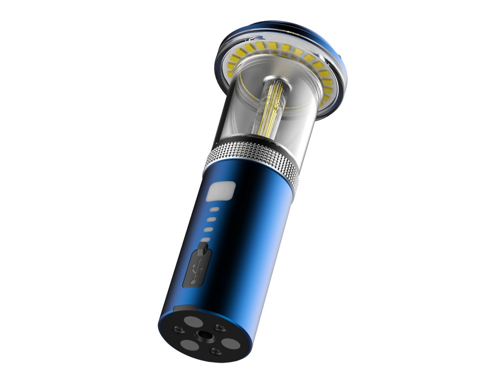- Tři zdroje světla (COB + SMD): Poskytuje svítivost od 55 lm do 500 lm podle nastaveného režimu a světelného zdroje.