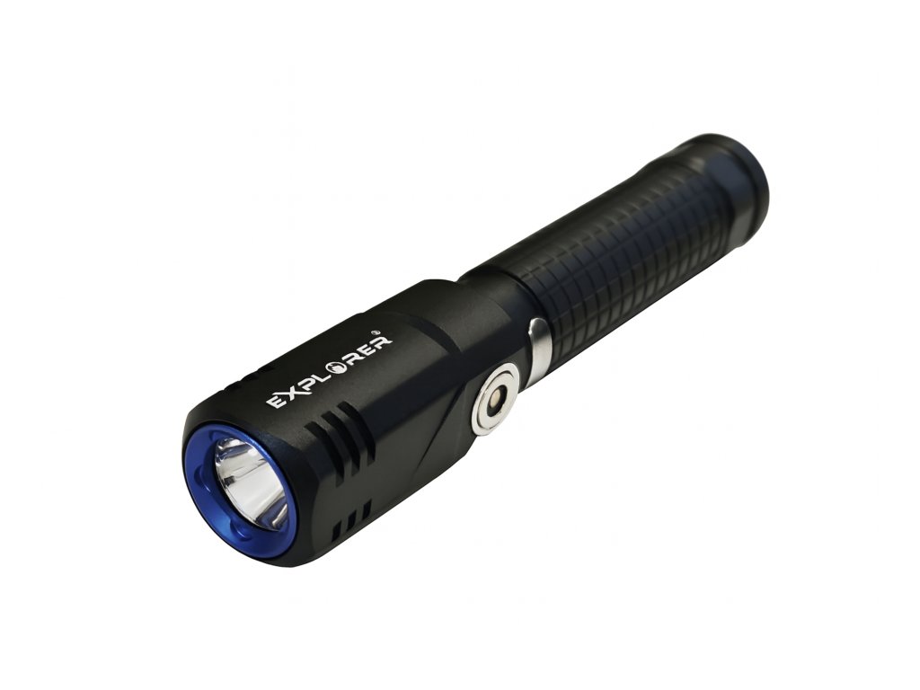 - Flexibilní nastavení – Hlavici baterky lze otočit o 90 stupňů, což vám umožní osvětlení i těžko dostupných míst.