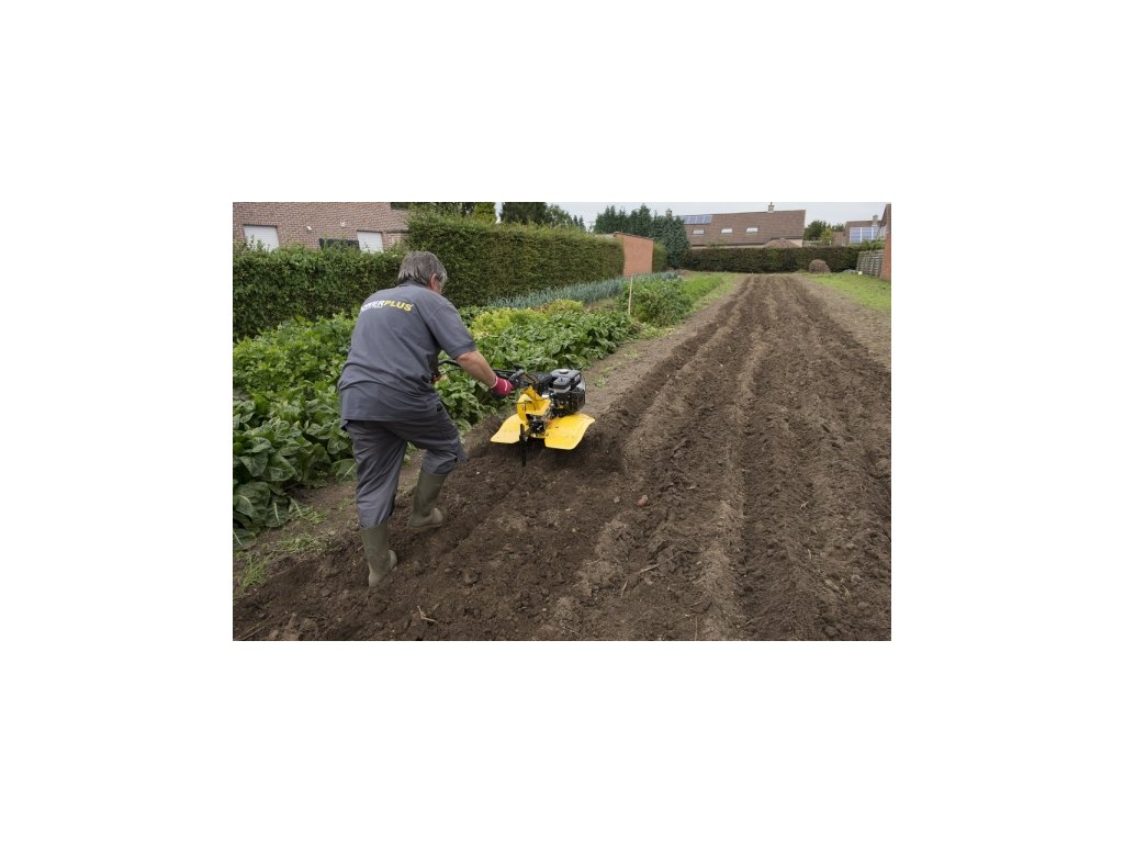 Benzinový kultivátor 208cc plus pluh. , Max. hloubka při kultivaci - 310 mm, Šířka pluhu - 240 mm, Hmotnost - 64 kg, Pracovní záběr - 1 050 mm, Max. otáčky motoru - 3 600min -1, Výkon - 4,2 kW / 6 HP, Obsah motoru - 208 cm3, 4-takt OHV POWERPLUS...