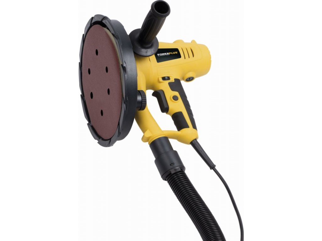 Navrženo pro velké plochy Obzvláště vhodný pro broušení omítek a nebo lakované povrchy(sádrokarton, stěny, apd.) Prašnost je snížena na minimum pomocí flexibilní hadice a sacího vaku (lze použít vysavče POWERPLUS) Brusná hlava je vyrobena tak, že brusný kotouč se vždy přizpůsobí broušenému povrchu. Brusná plocha je měkká a konická pro zabránění poškrábání broušeného povrchu.Upnutí brusného kotouče pomocí suchého zipu.