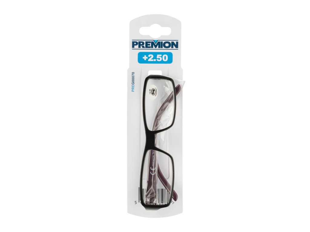 Brýle čtecí MODEL 4 černá/červená plus 2.50. Čtecí brýle Premion PREG00070 kombinují styl a funkčnost s elegantním černo-červeným rámem. Síla čoček plus 2,50 zajišťuje jasné a ostré vidění při čtení. Tyto brýle jsou ideální pro každodenní použití a přidají vašemu vzhledu moderní nádech....