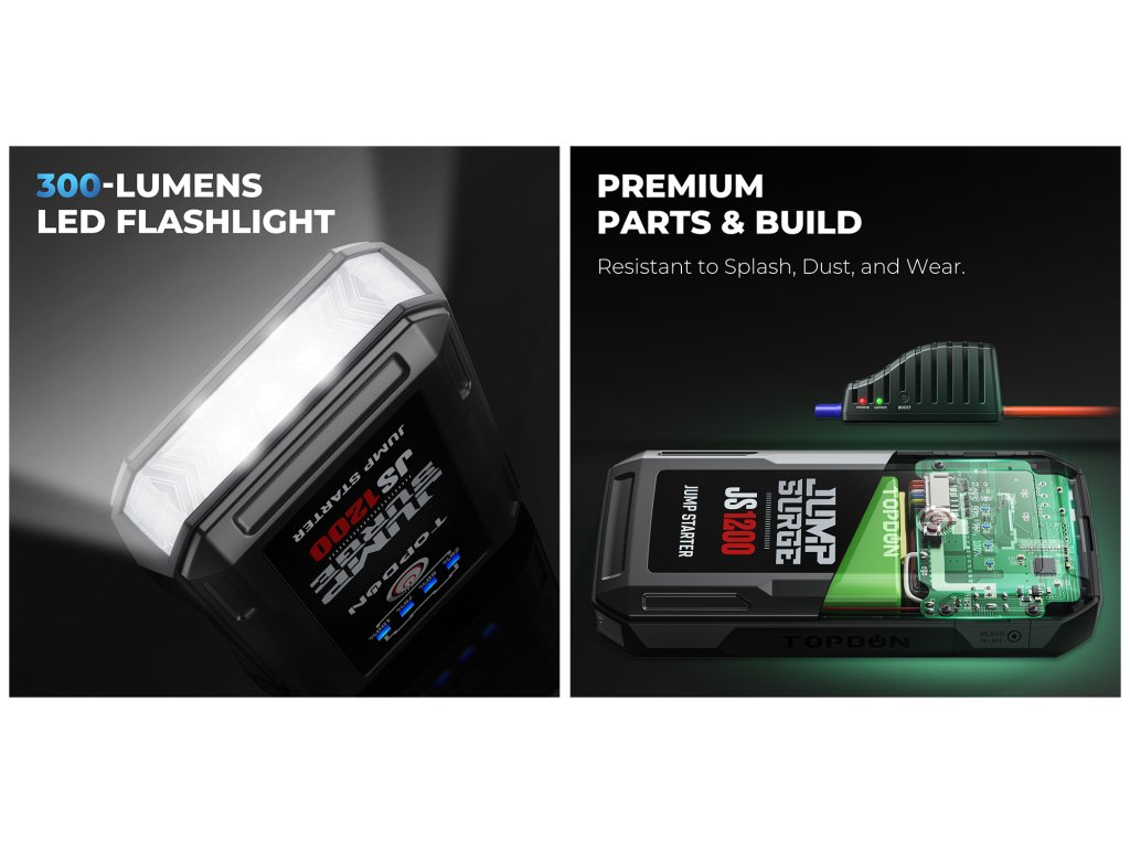 Maximálně spolehlivý a výkonný car jump startér Jump Surge 1200 s kapacitou 10000mAh (37Wh) a startovacím proudem až 1200A je ideální zařízení, které vám poslouží jako startovací zdroj pro vaše vozidla, lodě, motocykly, skútry atd. JumpSurge1200 vám umožní oživit baterii a nikdy nezůstat na cestách bez pomoci!