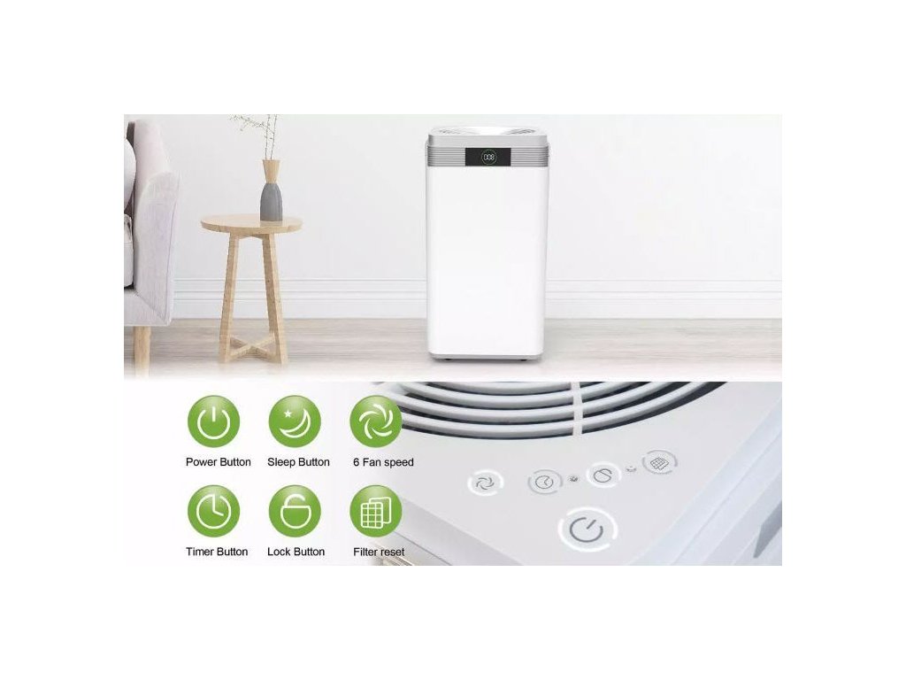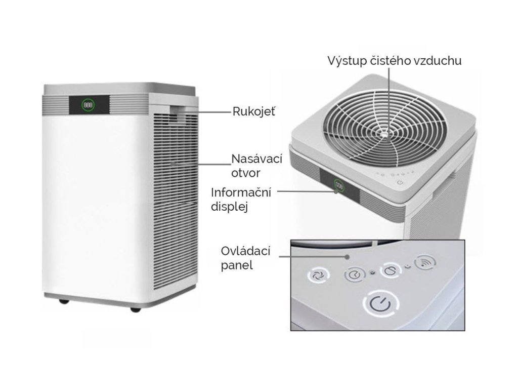 2x 4 stupňová filtrace včetně ™HEPA • vzduchový výkon 600 m3/hod • velikost místnosti 72 m2 • ionizace vzduchu • automatický režim • LCD displej • senzor kvality ovzduší • hlídání znečištění a výměny filtrů • WiFi • časovač • regulace výkonu filtrace
