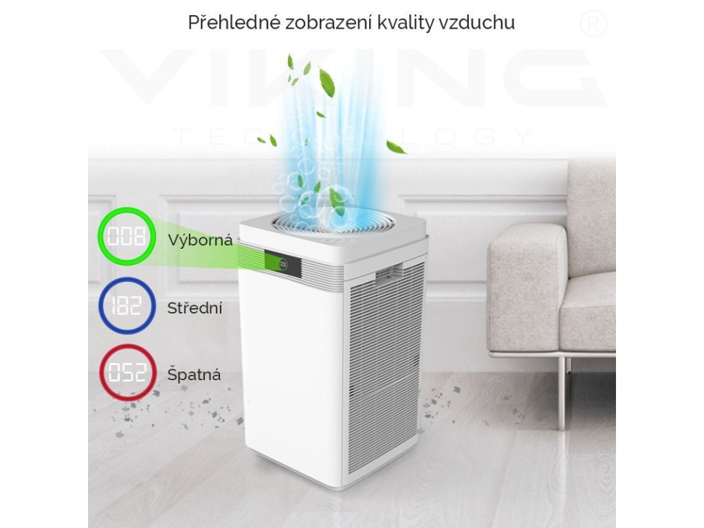 - CADR – vzduchový výkon 600 m3/hod, doporučená velikost místnosti 72m2