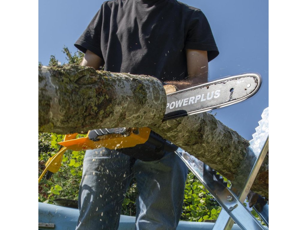 Nařezat dříví nebo ořezat silnější větve? Tato řetězová pila POWEG10020 od PowerPlus s 2000W motorem poskytuje výkon a pohodlí, které pro svou práci potřebujete. Protože tato řetězová pila pracuje na elektřinu, produkuje méně hluku, vyžaduje méně údržby a je ekologičtější volbou ve srovnání s motorovou pilou na palivo. Jeho vysoce kvalitní řetěz a vodicí lišta o délce 350mm v kombinaci s automatickým mazáním řetězu z něj činí odolný nástroj, který budete moci používat po mnoho let. Tato řetězová pila je vybavena automatickým systémem mazání. Tento systém zajišťuje, že vodicí lišta a řetěz jsou vždy pokryty dostatečným množstvím mazacího oleje. Automatické mazání výrazně snižuje opotřebení řetězu a zajišťuje správnou funkci. Pila je vybavena systémem nízkého zpětného rázu, který minimalizuje riziko zpětného rázu, a proto je jeho použití bezpečnější.