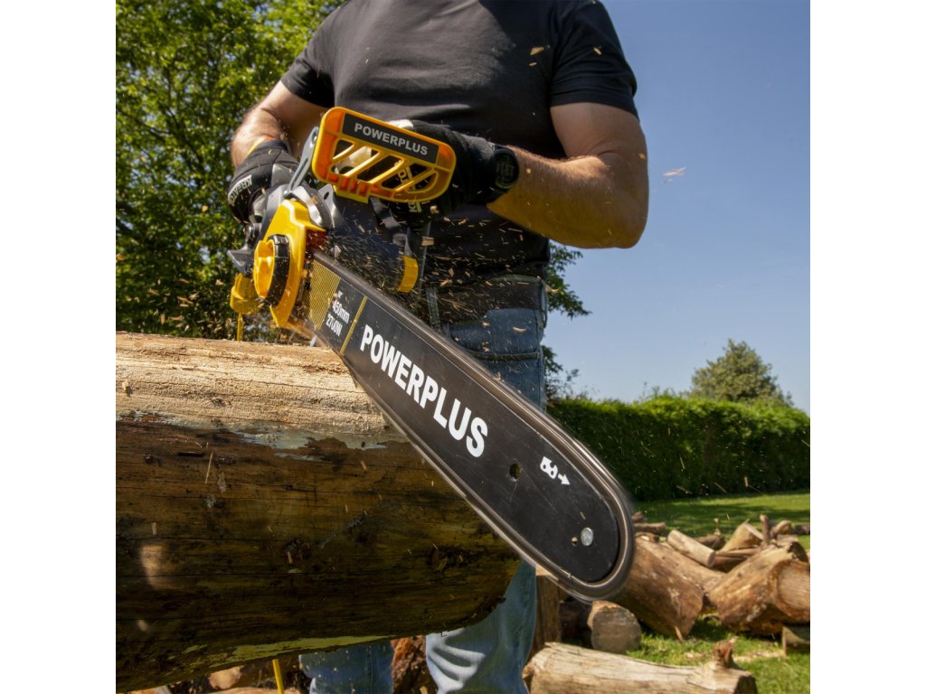 Nařezat dříví nebo ořezat silnější větve? Tato řetězová pila POWXG10027 od PowerPlus s 2700W motorem poskytuje výkon a pohodlí, které pro svou práci potřebujete. Protože tato řetězová pila pracuje na elektřinu, produkuje méně hluku, vyžaduje méně údržby a je ekologičtější volbou ve srovnání s motorovou pilou na palivo. Jeho vysoce kvalitní řetěz a vodicí lišta o délce 450mm v kombinaci s automatickým mazáním řetězu z něj činí odolný nástroj, který budete moci používat po mnoho let. Tato řetězová pila je vybavena automatickým systémem mazání. Tento systém zajišťuje, že vodicí lišta a řetěz jsou vždy pokryty dostatečným množstvím mazacího oleje. Automatické mazání výrazně snižuje opotřebení řetězu a zajišťuje správnou funkci. Pila je vybavena systémem nízkého zpětného rázu, který minimalizuje riziko zpětného rázu, a proto je jeho použití bezpečnější. Beznástrojový napínací systém: Řetěz této řetězové pily lze napnout rychle a snadno, bez potřeby dalších nástrojů. Pila je vybavena systémem pozvolného rozběhu, který způsobuje postupné zrychlení motoru. To je bezpečnější a poskytuje větší kontrolu. Rychlé zastavení je nezbytným bezpečnostním prvkem, který zajišťuje okamžité zastavení řetězu, když pustíte vypínač.