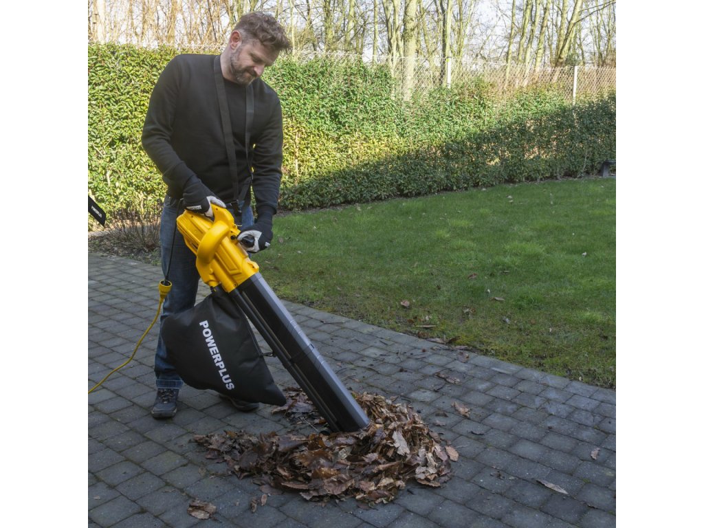 Výkonný elektrický vysavač, foukač listí POWEG4030 od Powerplus pro rychlý a efektivní úklid zahrady. S výkonem motoru 3300 W, rychlostí vzduchu 250 km/h a průtokem vzduchu 10 m³/min snadno odstraníte volné listí a další zahradní nečistoty.Co umí tento foukač listí? • Foukač listí nejen odfoukává, ale také vysává zahradní odpad do velkého sběrného vaku. • Vestavěný mulčovač zmenšuje objem nasbíraného odpadu v poměru 10:1, což umožňuje sběrnému vaku pojmout více materiálu. Hlavní přednosti: • Tři funkce v jednom: foukání, vysávání a mulčování. • Kompaktní design: třídílnou trubku lze snadno rozložit pro úsporu místa při skladování. • Snadná přeprava: robustní kolečka a ramenní popruh odvádějí většinu váhy, chrání záda a zvyšují komfort i při delší práci. • Tichý a ekologický provoz na elektřinu: méně hluku, nižší nároky na údržbu a šetrnější k životnímu prostředí než benzínové foukače. • Měkká rukojeť: příjemný měkký materiál zajišťuje pevný úchop a komfort i při delším používání.