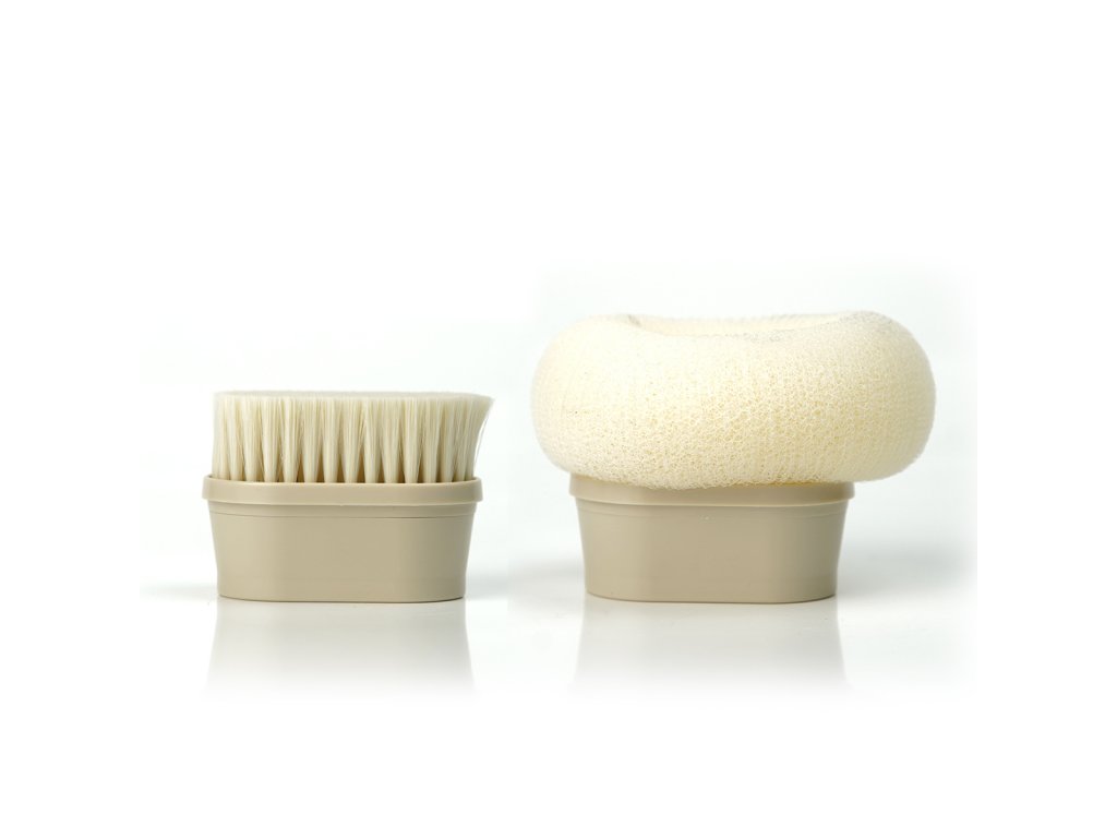 Magnetický kartáč pomáhá snadno vyčistit hůře dostupná místa a zároveň pokožku jemně promasíruje. Peelingová houba šetrně odstraňuje odumřelé kožní buňky a nečistoty, zanechává pokožku hladší a svěžejší – ideální jako rychlý domácí peeling během sprchování.
