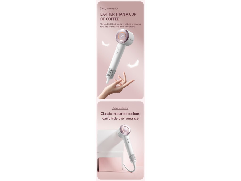 Ionizační fén GLOX D9 nabízí perfektní péče o vlasy s moderní technologií. Objevte revoluční ionizační fén GLOX D9 který kombinuje výkon s kompaktním designem. S příkonem 1600 W a bezkartáčovým motorem, který dosahuje až 110 000 otáček za minutu, vám tento fén poskytne rychlé a efektivní sušení vlasů, zatímco se postará o jejich zdraví a lesk. Tento fén je ideálním společníkem pro každou ženu, která si potrpí na zdraví svých vlasů. Díky pokročilé technologii a kompaktnímu designu se stane nepostradatelným pomocníkem nejen doma, ale i na cestách. Užívejte si rychlé sušení, které nezatěžuje vlasy, a dopřejte si profesionální péči v pohodlí vašeho domova.