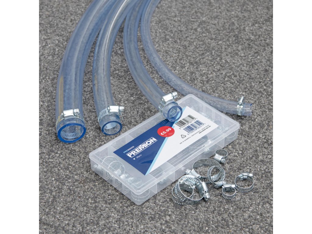 Sada hadicových svorek Premion PRE900056 je ideálním řešením pro zajištění různých typů hadic. Tato 26dílná sada vám umožní rychle a efektivně upevnit hadice s průměrem od 16 do 40 mm, což zajišťuje flexibilitu a univerzálnost použití.Univerzální použití: Vhodné pro různé typy hadic.Rychlá instalace: Snadné a rychlé upevnění bez nutnosti speciálního nářadí.Kvalitní materiál: Zajišťuje dlouhou životnost a spolehlivost.Tato sada je ideální pro domácí kutily i profesionály, kteří hledají spolehlivé a snadno použitelné řešení pro upevnění hadic. Premion je značka, na kterou se můžete spolehnout, pokud jde o kvalitu a výkon.