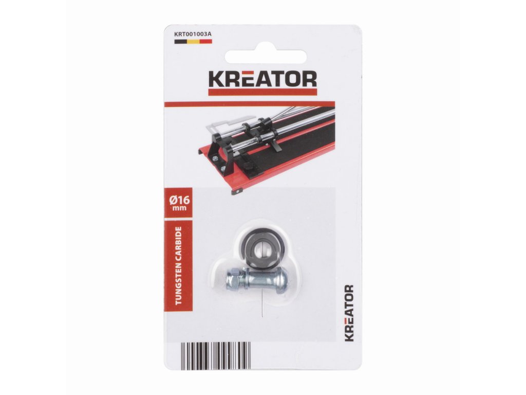 Potřebuje vaše řezačka dlaždic nový řezací kotouč? Toto řezací kolečko KRT001003A má průměr 16 mm a je kompatibilní s řezačkou dlaždic KRT001003 z řady Kreator.