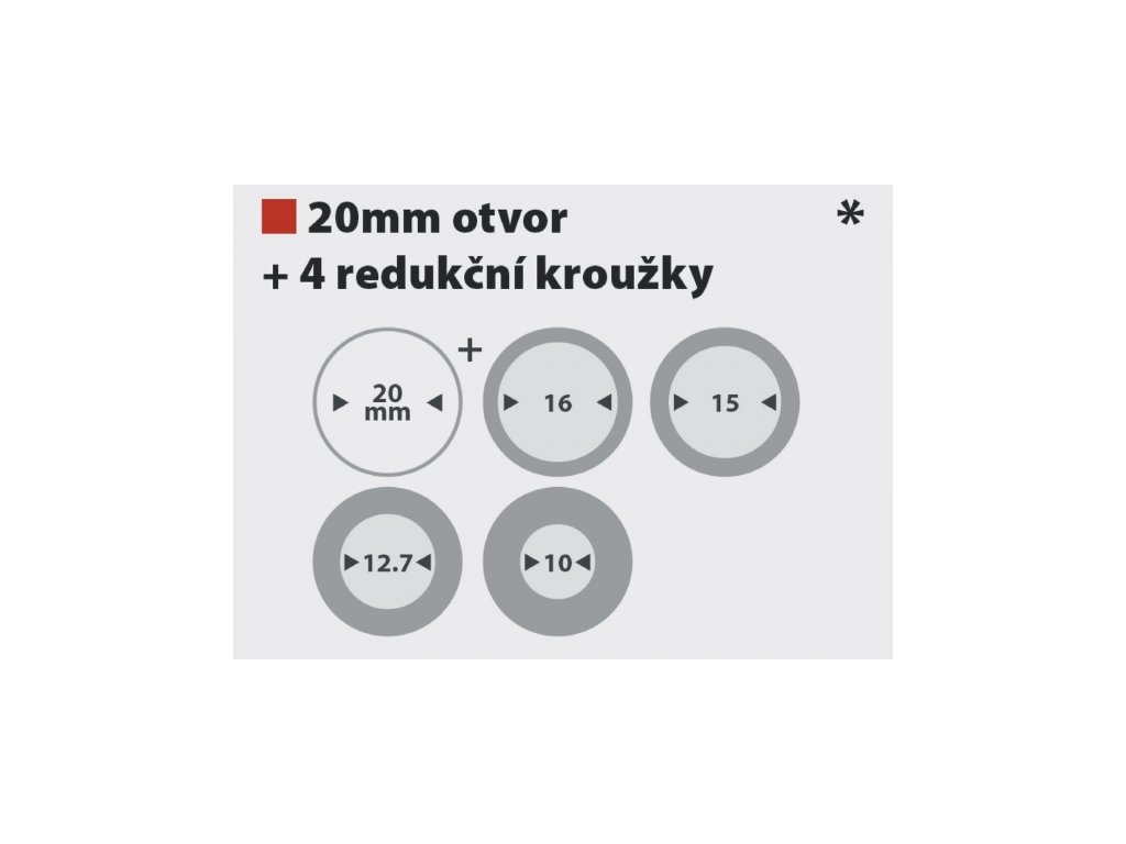 - 4 redukční kroužky 16mm / 15mm / 12,7mm / 10mm