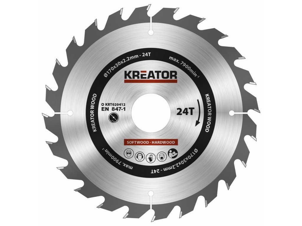 Pilový kotouč na dřevo 170mm, 24T KREATOR KRT020412