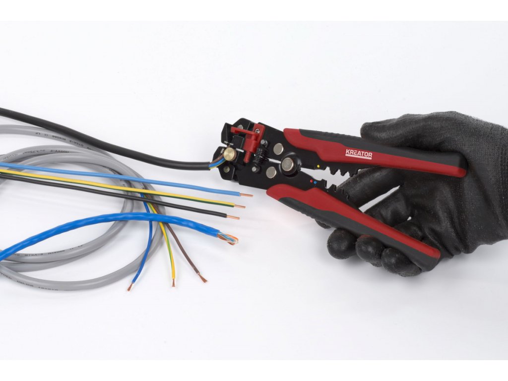 S tímto automatickým odstraňovačem izolace vodičů Kreator KRT606006 profesionální kvality můžete snadno odstranit izolační materiál obklopující elektrické vodiče bez poškození kabeláže. Nástroj dokáže odizolovat tenké i silnější měděné a hliníkové dráty. Bez námahy odizolujte vícežilové kabely až do průměru 10 mm a jednožilové kabely až do průměru 6 mm. Odizolovač drátu se automaticky nastaví. Použijte tento odstraňovač izolace také k přeštípnutí vodičů a kabelů. Kabelová oka 7 - 8 mm lze krimpovat pomocí integrovaného krimpovacího nástroje. Měkká pryžová rukojeť poskytuje pevný protiskluzový úchop a zvyšuje uživatelský komfort. Je to extrémně odolný nástroj.