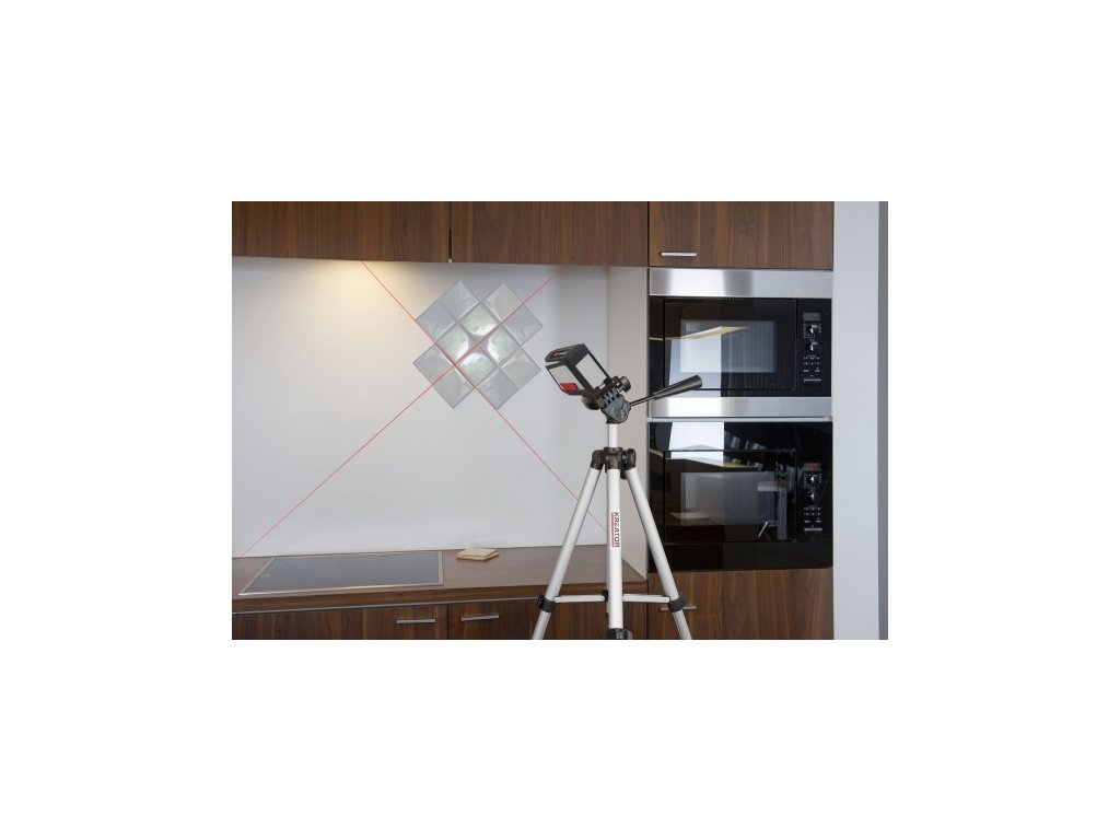 Od této chvíle budete obkládat zeď nebo zavěšovat věci přesně a rovně, protože jste schopni promítat horizontální a vertikální čáry velmi přesně. To je to, co můžete očekávat od tohoto křížového laseru Kreator, který dosahuje až 12 metrů daleko. Samonastavovací křížový laser se vyrovná do šesti sekund s přesností 0,6 mm / metr. Umístěte KRT706310 přímo na stůl nebo skříň a nebo jej umístěte ještě stabilněji na hliníkový stativ (není součástí balení). Jeho výška je nastavitelná od 50 cm do 152 cm, jak vám bude nejlépe vyhovovat. Tento laser navíc podporuje 90st křížení.