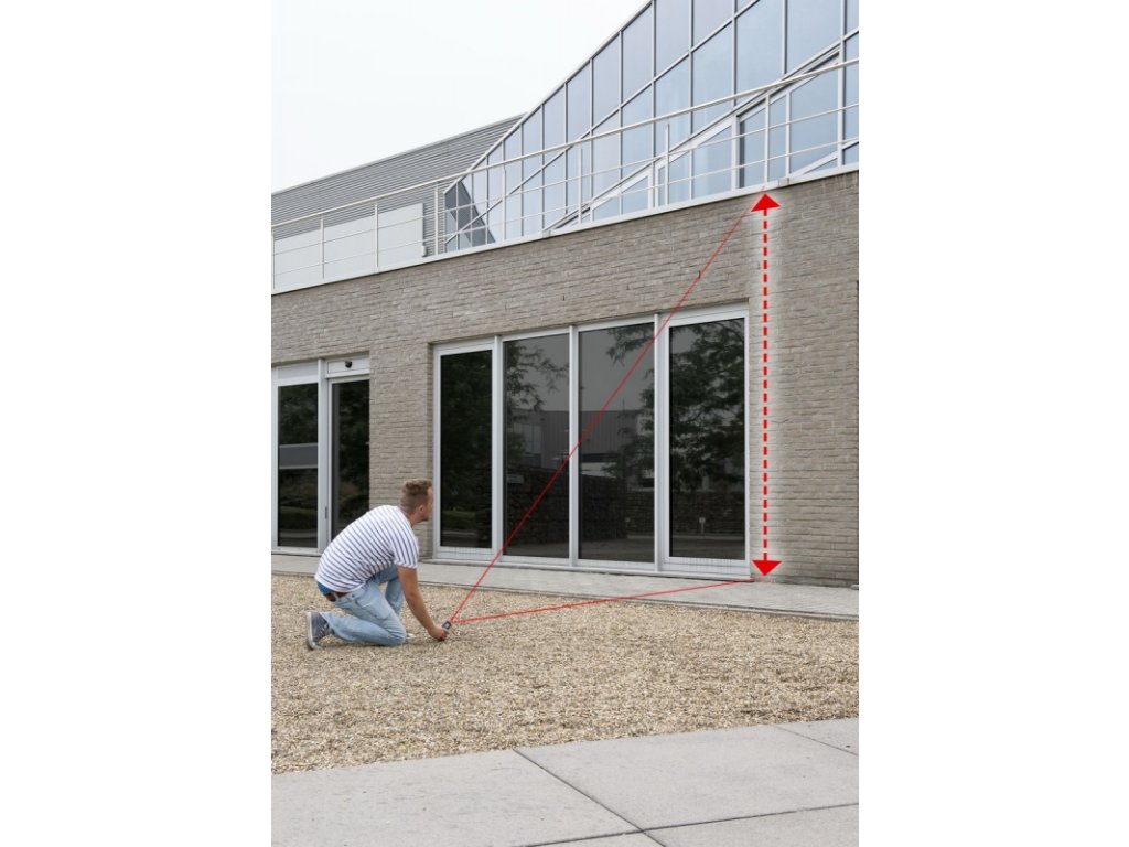 Tento digitální laserový dálkoměr je dokonalým partnerem pro měření vzdáleností až do 20 m s přesností 2 mm. Nejenže vám změří přesnou vzdálenost, ale také automaticky vypočítá objem a obsah. Nepřímá měření jsou možná díky pythagorovým rovnicím. Tímto způsobem můžete dokonce určit vzdálenosti, v případě, že lineární měření není možné kvůli překážkám.
