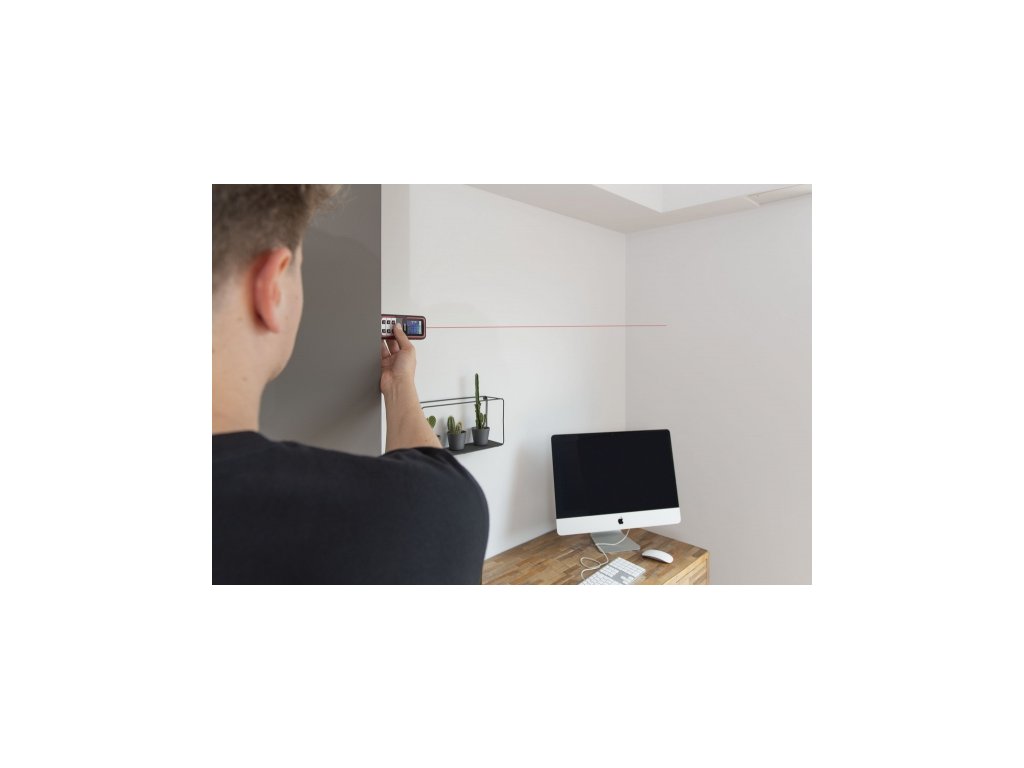 Tento digitální laserový dálkoměr je dokonalým partnerem pro měření vzdáleností až do 60 m s přesností 2 mm. Nejenže vám změří přesnou vzdálenost, ale také automaticky vypočítá objem a obsah. Nepřímá měření jsou možná díky pythagorovým rovnicím. Tímto způsobem můžete dokonce určit vzdálenosti, v případě, že lineární měření není možné kvůli překážkám.
