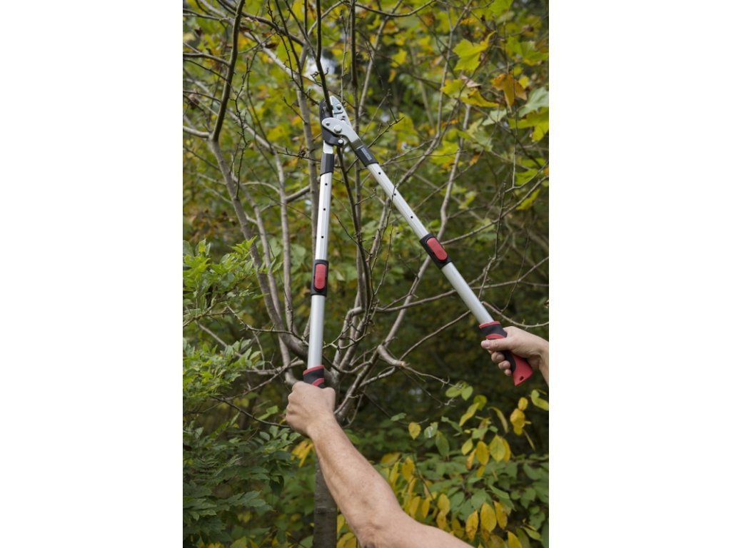 Nůžky na větve AL teleskopické kovadlinkové SK5. Rozměr 595-810mmMaximální prům. stříhané větve 39mmTyp: kovadlinkové - vhodné na suché větveČepele vyrobeny z vysoce kvalitní japonské oceli SK5Čepele s povlakem Anti-stickLehké oválné hliníkové rukojetiMěkčená rukojeť180procent řezný výkon...