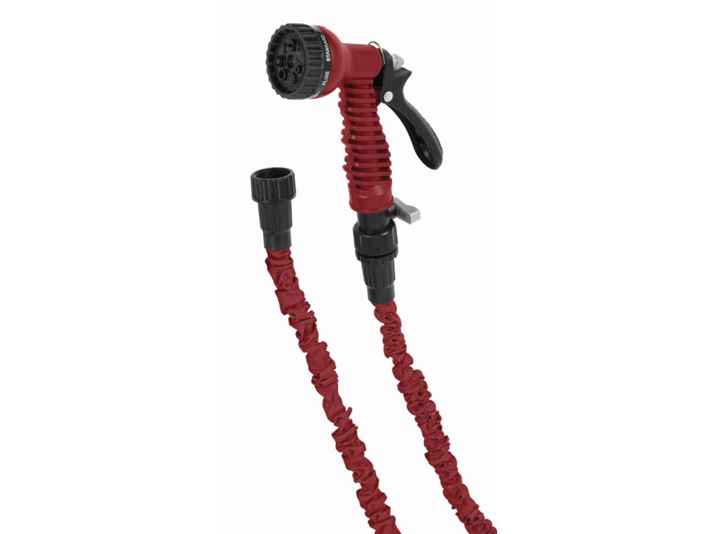 Kompaktní zahradní hadice, která se snadno skladuje a přesto nabízí dostatečnou délku, aby dosáhla do všech koutů vaší zahrady. To je naše flexibilní zahradní hadice Kreator KRTGR67011! Navíc je hadice dodávána s praktickou stříkací pistolí s nejméně 7 různými vzory stříkání. Díky tlaku vody se hadice roztáhne na délku 15 m, takže můžete stříkat i ty nejvzdálenější kouty vaší zahrady. Po použití se zmenší na velikost, kterou lze pohodlně uložit: 5 m. Ujistěte se, že jste zavřeli kohoutek a vypustili zbývající vodu, aby se uvolnil tlak, když se hadice nepoužívá, aby byla zaručena dlouhá životnost.