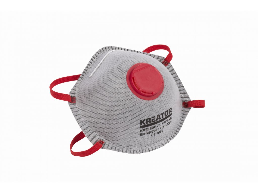 Tento respirátor KRTS1001VC třídy FFP1 s redukcí zápachu a výdechovým ventilem poskytuje ochranu proti netoxickým tuhým a kapalným částicím (např. olejové mlhy). Filtrace nejméně 80procent vzdušných částic.