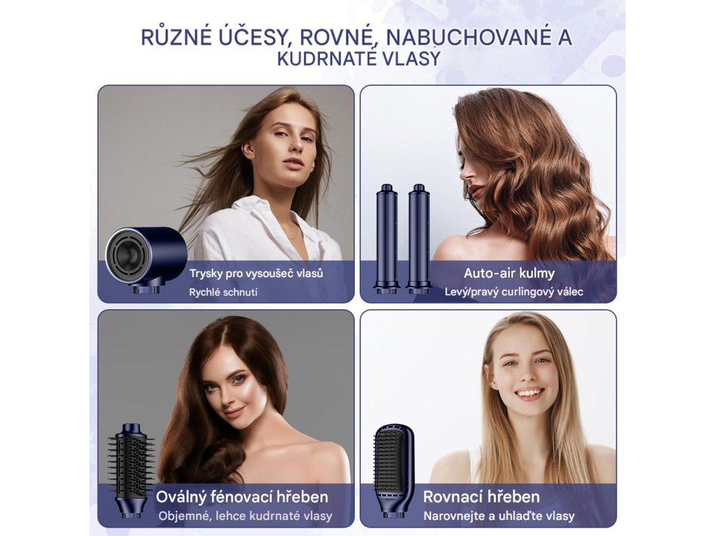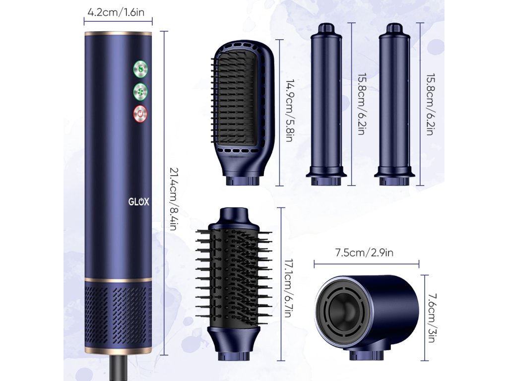 Vysokorychlostní multifunkční fén GLOX je dokonalým řešením pro ty, kteří hledají rychlé, efektivní a profesionální výsledky při péči o vlasy. Díky svým pokročilým funkcím a technologii je ideální volbou pro každodenní použití i speciální příležitosti. Hlavní vlastnosti: Tento multifunkční fén je navržen tak, aby vytvořil efekt jako v profesionálním kadeřnictví a dodal vašim vlasům zářivý lesk. Je ideální pro každodenní použití i speciální příležitosti. S otáčkami až 110 000 ot./min. a silným prouděním vzduchu dokáže tento fén vlasy vysušit za krátkou dobu, což je až 2x rychlejší než u tradičních fénů. Vlasy uschnou během několika minut, což šetří váš čas. Fén nabízí 3 teplotní úrovně a 3 rychlosti proudění vzduchu, což umožňuje přizpůsobit sušení a styling potřebám vašich vlasů. Tato flexibilita zajišťuje optimální péči bez zbytečného přehřívání. Díky technologii uvolňování desítek milionů negativních iontů minimalizuje poškození kutikuly, účinně vyhlazuje krepatění a udržuje vlasy hydratované a lesklé. Tento fén je vybaven různými nástavci, které umožňují vytvářet různé účesy, ať už jde o hladké, vlnité nebo objemné styly. Je ideální pro všechny typy vlasů. Výhody používání: Úspora času: Díky vysoké rychlosti a silnému proudění vzduchu je sušení vlasů rychlé a efektivní. Univerzálnost: Sada nabízí široké možnosti stylingu, což z něj činí ideálního pomocníka pro různé účesy. Zdravější vlasy: Technologie negativních iontů pomáhá udržovat vlasy zdravé, lesklé a bez krepatění. Snadné použití: Ergonomický design a intuitivní ovládání zajišťují pohodlné používání. Ideální pro: Profesionální kadeřníky i domácí uživatele, kteří chtějí dosáhnout profesionálních výsledků. Všechny typy vlasů, včetně jemných, hustých, rovných i kudrnatých vlasů.