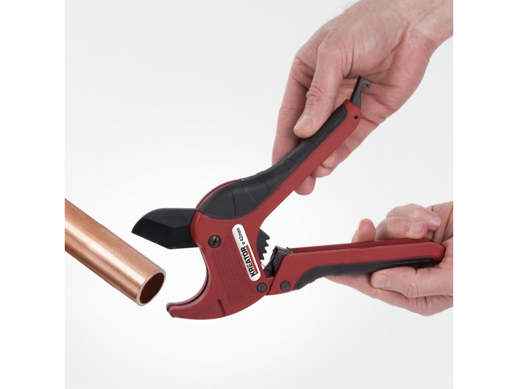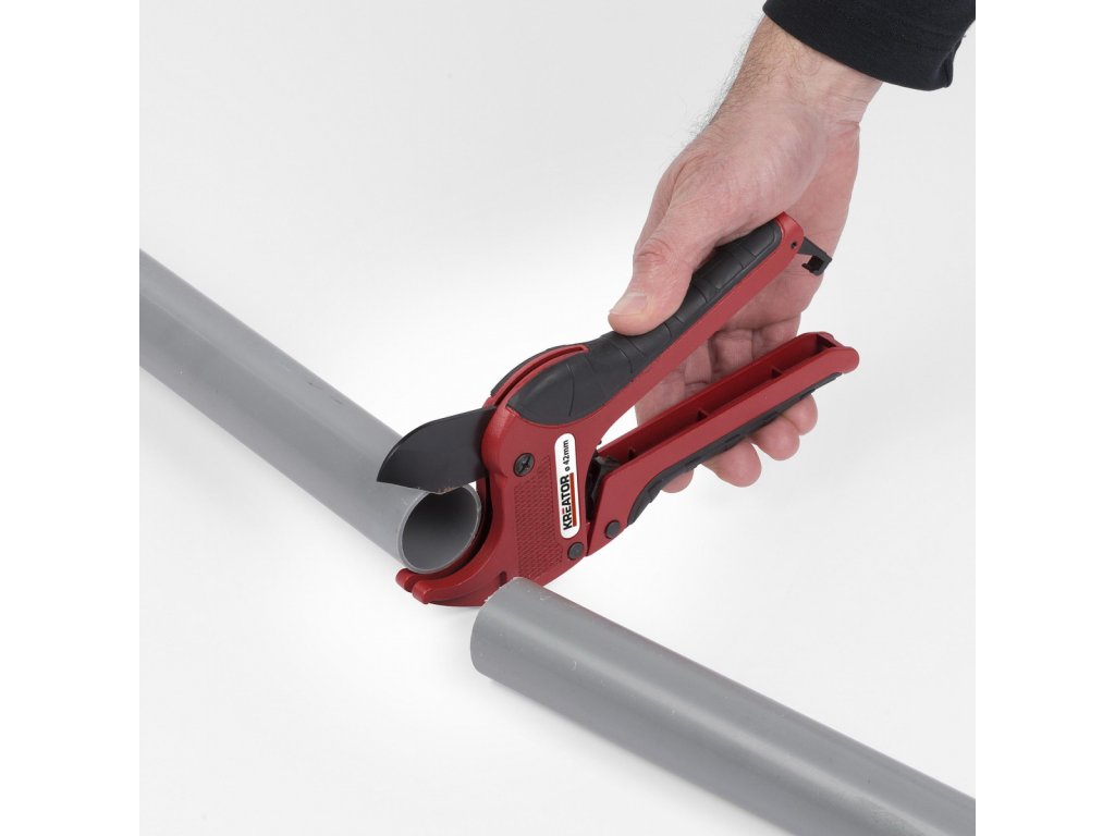 Nůžky na trubky 42 mm - HIGH QUALITY. Tyto vysoce kvalitní nůžky KRTH00603 od Kreator na trubky dokáží bez námahy stříhat hliníkové, měděné a PVC trubky o průměru 3 mm – 42 mm. Průměr je snadno nastavitelný, takže můžete bez námahy provádět kolmé střihy., Min. průměr trubky - 3 mm, Max. průměr...