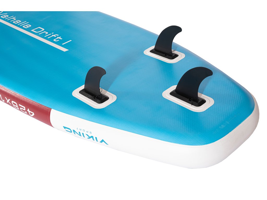 Paddleboard Viking Valhalla Drift I • Rozměr: 426x125x20 cm • Velikost 13' 11'' • Nafukovací paddleboard • Bohaté nadstandardní příslušenství • 4vrstvé PVC, 5vrstvá tkaná látka 1000D, protiskluzová podložka z EVA • Rodinný paddleboard • Maximální nosnost: 335kg • Rychlé nafukování i vypouštění vzduchu • Stylový, stabilní a perfektně vybavený