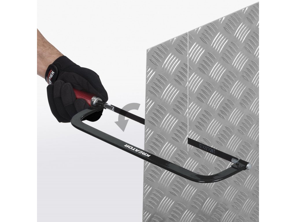 Pilka na železo 300mm Plastová rukojeť. Tato kovová pila KRTH80406 od Kreator dokáže řezat všechny druhy kovů, jako je hliník, ocel a železo. Pilový kotouč o délce 300 mm je vyroben z vysoce kvalitní oceli Mn65 a v rámu ho lze upevnit 4 různými způsoby, takže si můžete snadno nastavit úhel a...