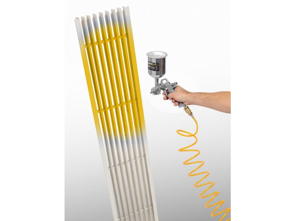 Základní 5-ti dílná sada ke kompresoru 1 ks stříkací pistole na barvy Typ upnutí – EURO spojka Potřebný proud vzduchu (100procent výkonu): 120-200 l/min. (4.2-7.1CFM) 1 ks tryska 1,5 mm 1 ks mycí pistole potřebný proud vzduchu – 70-220 l/min. Tlak vzduchu: 3-4 kg/cm3 (0.21-0.28psi) Spojka přívodu vzduchu: 1/4" 1 ks ofukovací pistole s 2 mm tryskou 1 ks 5 metrů PE vzduchové hadice