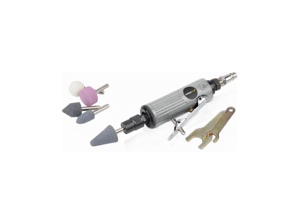 1 ks rázový utahovák Max. utahovací moment: 310 Nm Otáčky: 7.000/min 1 ks přímé brusky, 6 mm upínání Otáčky: 25.000/min.