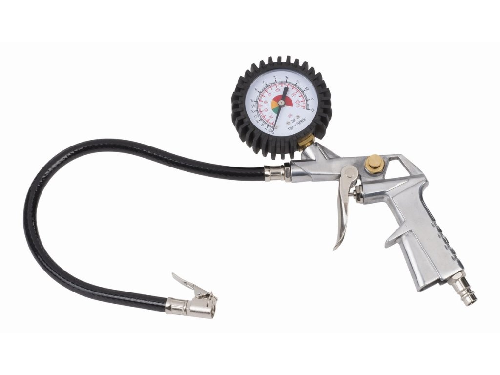 Hustící pistole plus Manometr. , Pracovní tlak - 0 - 8bar, Délka hadice - 330mm, Tlakoměr - 1 - 12bar...