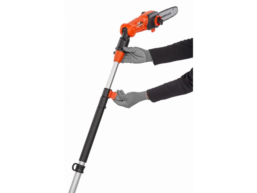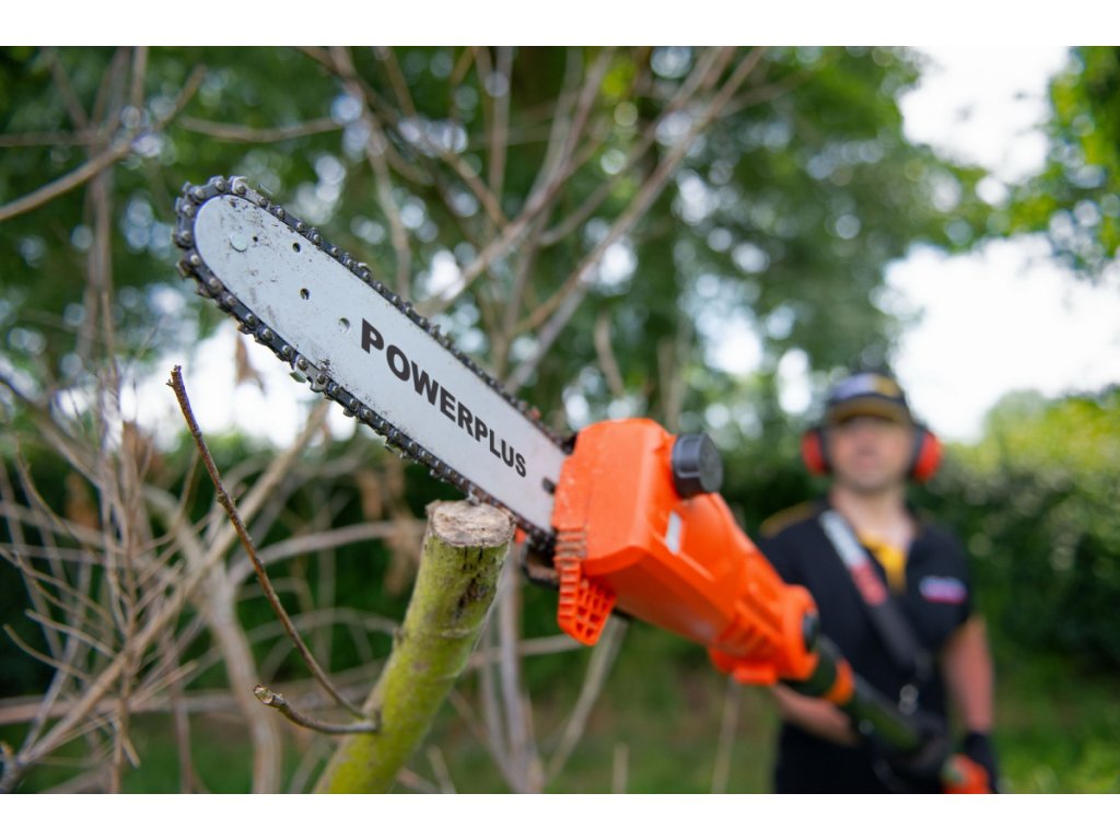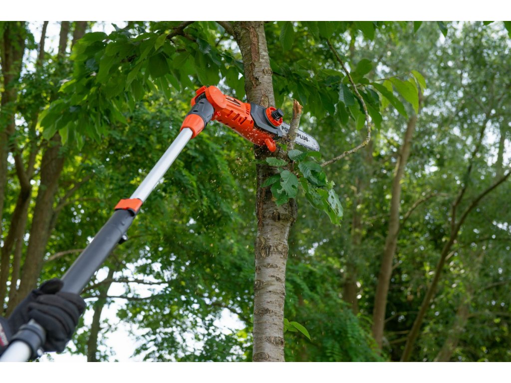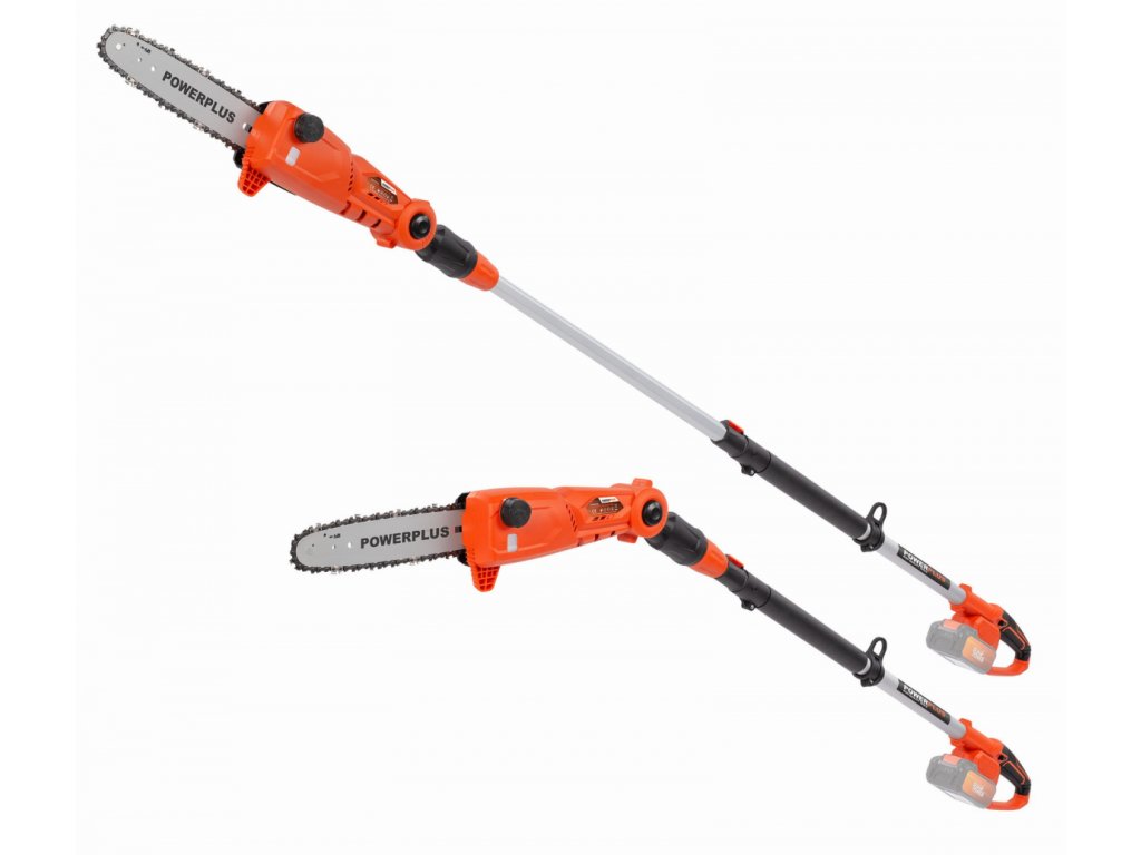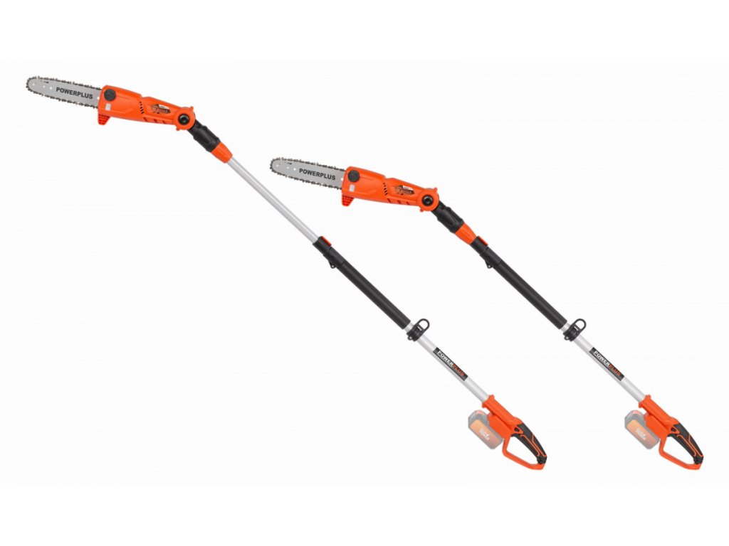Řezání větví na vrcholcích stromů při zachování obou nohou na zemi: tato řetězová pila POWERPLUS POWDPG75385 DualPower toto umožňuje. Akumulátorová teleskopická vyvětvovací pila o napětí 40V má výsuv až do délky 240 cm a s možností nastavení úhlu řezací hlavy lze pohodlně stříhat i ty nejvyšší větve bez nutnosti žebříku. Je vybavena kvalitní 250 mm dlouhou lištou a řetězem, která je dostačující pro většinu prací na zahradě. Automatické mazání řetězu a seřízení řetězu bez použití nářadí zajišťují potřebný komfort. Použití pouze se 40V bateriemi ze série DualPower.