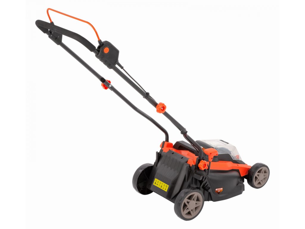 Tato akumulátorová sekačka na trávu POWDPG75561 od Powerplus je vybavena bezuhlíkovým motorem o napětí 20V. Se šířkou sečení 340 mm je ideální pro sečení menších a středních trávníků. Vyberte si optimální výšku pro svou trávu pomocí centrálního nastavení (5 pozic) mezi 25 a 65 mm. Trávu lze sbírat do 30 l sběrného koše, který je vybaven signalizací o naplnění, když je potřeba koš vyprázdnit. Sekačka funguje perfektně i bez sběrného vaku. V takovém případě je tráva odváděna zadním výhozem. Pro vaše pohodlí je tento stroj také vybaven měkčenou rukojetí, která poskytuje lepší komfort a přilnavost. Součástí není baterie ani nabíječka baterií, lze dokoupit. Použít můžete baterie ze série DUAL POWER o napětí 20V a také i baterie o napětí 40V. Použití 40V baterie zajišťuje ještě delší dobu chodu stroje ve srovnání s 20V verzí.