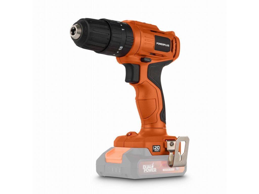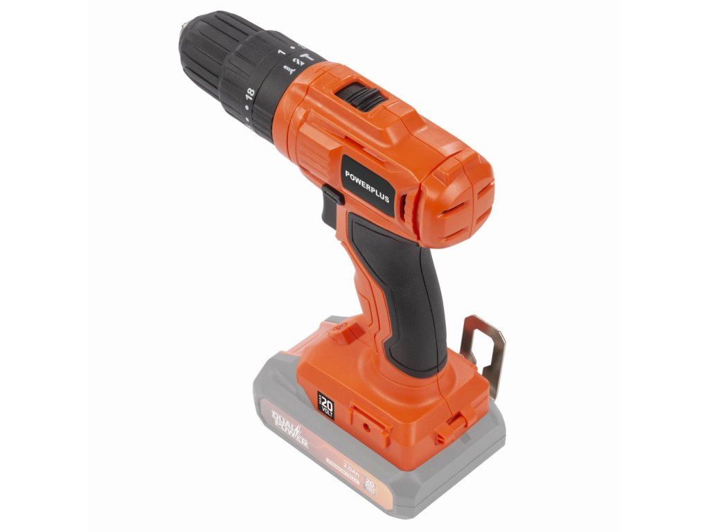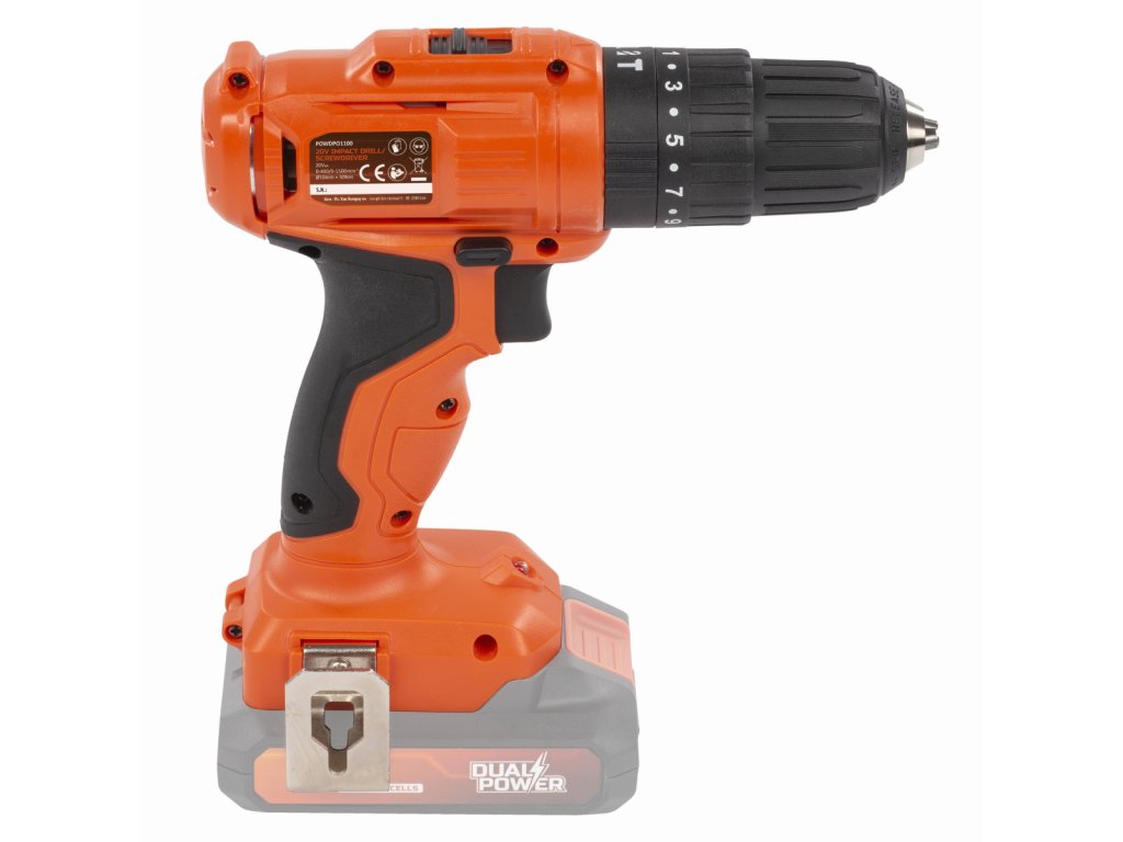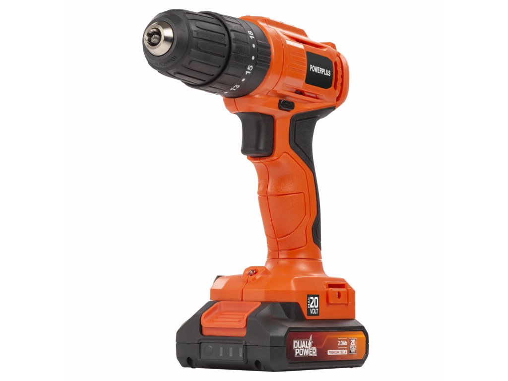 Tato AKU 20V příklepová vrtačka/šroubovák POWDPO1100 od Powerplus je ideální pro ty příležitostné domácí kutilské projekty, které vyžadují šrouby nebo (příklepové) vrtání. Tato příklepová vrtačka/šroubovák je kompaktní elektrické nářadí, které lze použít jak pro vrtání, tak pro šroubování. Bez námahy s ním vrtáte až 20 mm do dřeva, 10 mm do oceli a 6 mm do kamene. Vyberte si mezi 2 různými nastaveními rychlosti a 18 nastaveními točivého momentu, abyste plně přizpůsobili nástroj vašemu projektu. Nejvyšší nastavení otáček (0 min-1 – 1500 min-1) je pro vrtání a nižší otáčky (0 min-1 – 400 min-1) pro šroubování. Pokud se něco pokazí, rychlé zastavení okamžitě vypne nářadí, aby byl zajištěn bezpečný provoz za všech okolností. Ochrana proti přetížení zabraňuje přehřátí a přetížení elektromotoru. Automaticky vypne motor, když dojde k prudkému zvýšení teploty. Výměna vrtáků nebo šroubovacích bitů je rychlá díky rychloupínacímu sklíčidlu. Stroj je dodáván bez baterie a nabíječky. Použít můžete baterie ze série DUAL POWER o napětí 20V a také i baterie o napětí 40V. Použití 40V baterie zajišťuje ještě delší dobu chodu stroje ve srovnání s 20V verzí.