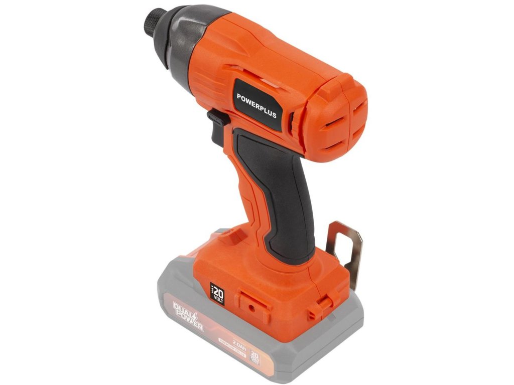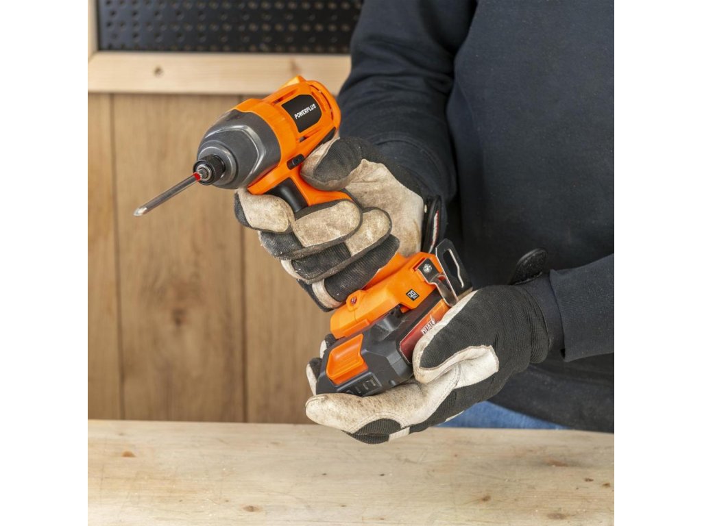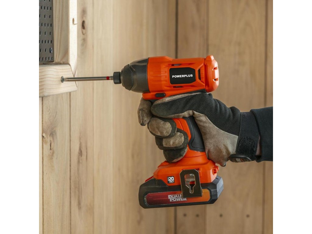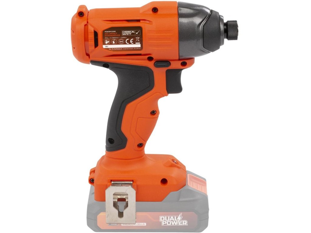 Tento AKU 20V rázový šroubovák POWDPO2000 od PowerPlus je ideální pro všechny projekty v domě a kolem něj, které vyžadují práci se šrouby. Tam, kde běžný šroubovák nestačí, může zabrat tento rázový šroubovák. Je všestranný pomocník, který lze použít jak pro lehké utahování, tak pro povolování. Snadno lze namontovat byty s připojením 1/4" HEX. Tento kompaktní Aku utahovák od Dual Power kombinuje uživatelskou přívětivost s vynikajícím poměrem cena/kvalita. Může dosáhnout maximálního utahovacího momentu 100 Nm. Vybírejte správnou rychlost pro použití mezi 0 min-1 a 2800 min-1, s frekvencí úderů až 0 úderů/min a 3000 úderů/min . Nástroj můžete přizpůsobit svému projektu. Upevnění/povolení: Praktický přepínač vlevo/vpravo použijte k upevnění nebo povolení šroubů. Ochrana proti přetížení zabraňuje přehřátí a přetížení elektromotoru. Automaticky vypne motor, když dojde k prudkému zvýšení teploty. Pokud se něco pokazí, rychlé zastavení okamžitě vypne nářadí, aby byl zajištěn bezpečný provoz za všech okolností. Pokud potřebujete mít volné ruce, můžete si nářadí snadno připevnit na opasek díky sponě na opasek. Praktické pracovní světlo poskytuje vždy jasný výhled na váš obrobek. Stroj je dodáván bez baterie a nabíječky. Použít můžete baterie ze série DUAL POWER o napětí 20V a také i baterie o napětí 40V. Použití 40V baterie zajišťuje ještě delší dobu chodu stroje ve srovnání s 20V verzí.