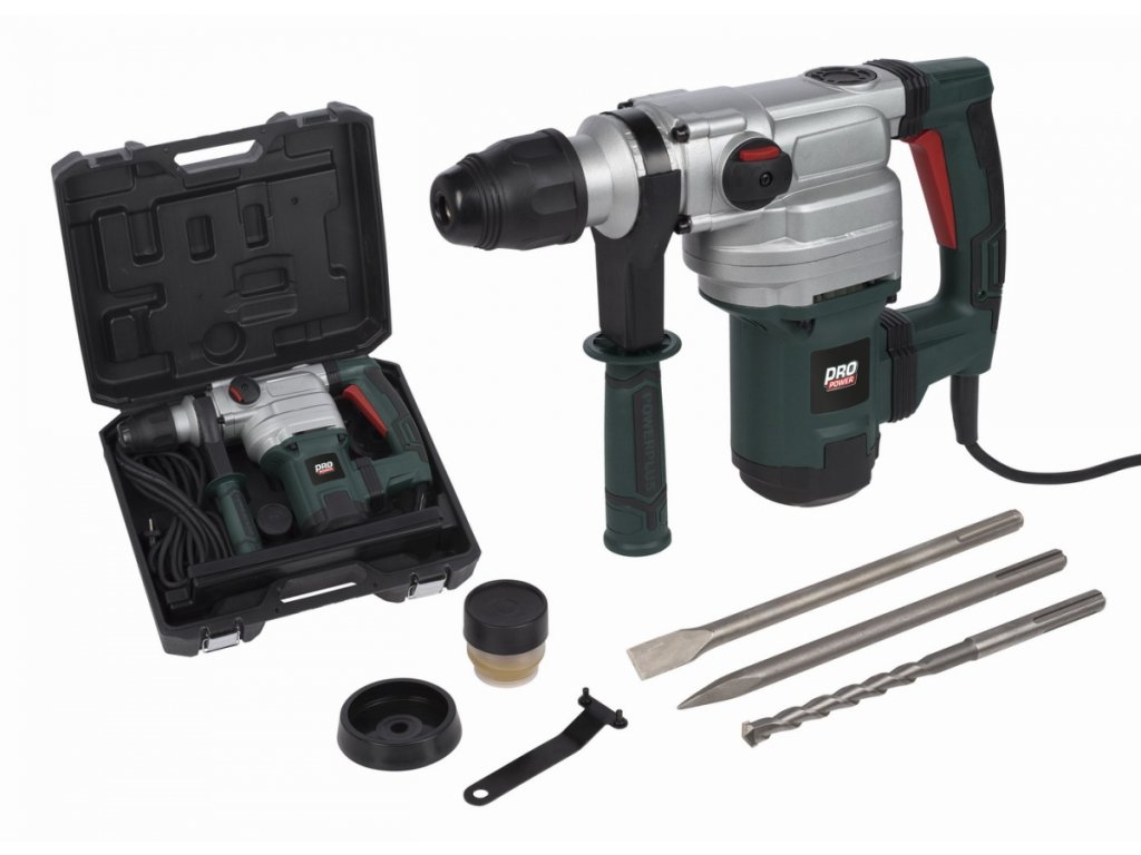 ŘADA PRO POWER JE NAVRŽENA TAK, ABY SPLNILA NÁROČNÉ POŽADAVKY PROFESIONÁLŮ.VYSOCE KVALITNÍ STROJE POSKYTUJÍ VYSOKÝ VÝKON A ZVLÁDNOU I TY NEJNÁROČNĚJŠÍ ÚKOLY.S PRO POWER SI MŮŽETE BÝT JISTI KVALITOU A SPOLEHLIVOSTÍ.Toto 1 050 W vrtací kladivo je přesně tím, co potřebujete pro náročné příklepové vrtání, sekání s možností pootočení sekáče. Kladivo produkuje 3 780 úderů za minutu se silou 10J. Dokážete s ním vrtat do betonu až do průměru 38 mm, 13 mm do oceli a až do 40 mm do dřeva. Rychlost lze nastavit od 0 do 480 min-1. Systém uchycení typu SDS max umožňuje rychlou výměnu dláta bez použití nástrojů. Měkčená rukojeť poskytuje maximální komfort a kontrolu nad kladivem během práce. Vrtací kladivo je vybaveno odnímatelnou pomocnou rukojetí, kterou lze namontovat na obě strany kladiva. POWP3030 je dodáván s prachovkou, plochým a špičatým sekáčem a jedním 18 mm