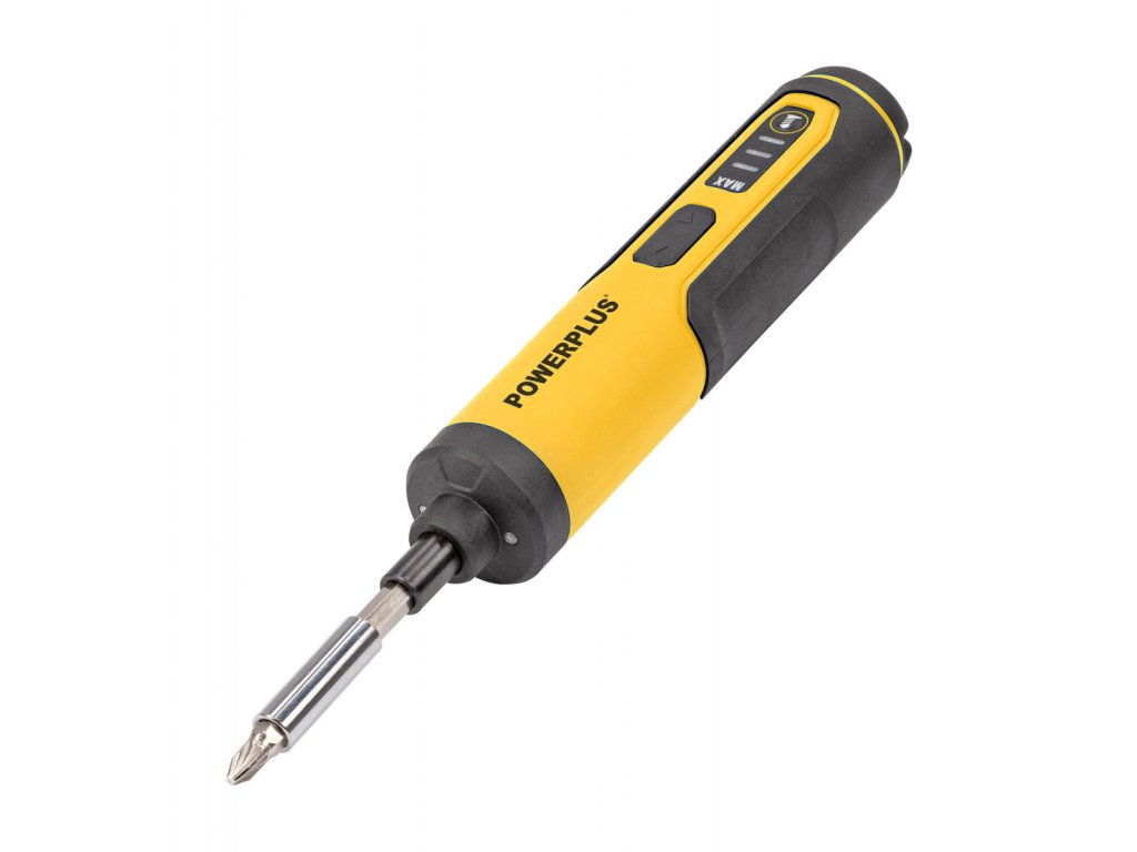 Powerplus POWX00420 je akumulátorový 4V šroubovák pro menší kutilské práce. Ve tvaru ručního šroubováku se pohodlně používá a vejde se přímo do kapsy. Všestranný šroubovák je kompaktní, přesto velmi výkonný s kapacitou baterie 1300 mAh. Těžká práce ve stísněných prostorách tedy není žádný problém a 3 LED pracovní světla vám dobře poslouží v úzkých, špatně osvětlených prostorách. Pouhým přepnutím otáčení doprava nebo doleva můžete šrouby utáhnout nebo povolit. 3 polohy točivého momentu (max. 4 Nm) poskytují nezbytnou kontrolu, takže můžete vždy použít ten nejlepší točivý moment pro váš projekt. Vestavěný držák bitů urychluje proces výměny bitů. POWX00420 můžete nabíjet pomocí dodaného USB kabelu. Nejen, že je tento kompaktní šroubovák dodáván v praktickém kufříku, ale také obsahuje 25 šroubovacích bitů, takže se můžete bez prodlení pustit do práce.
