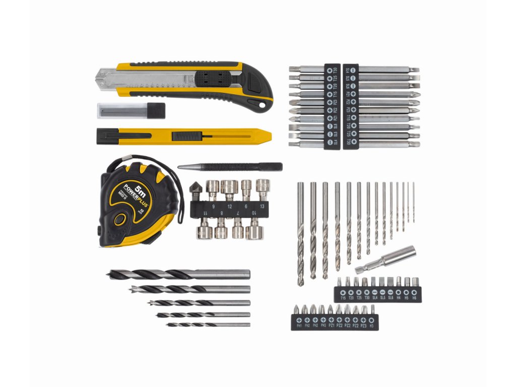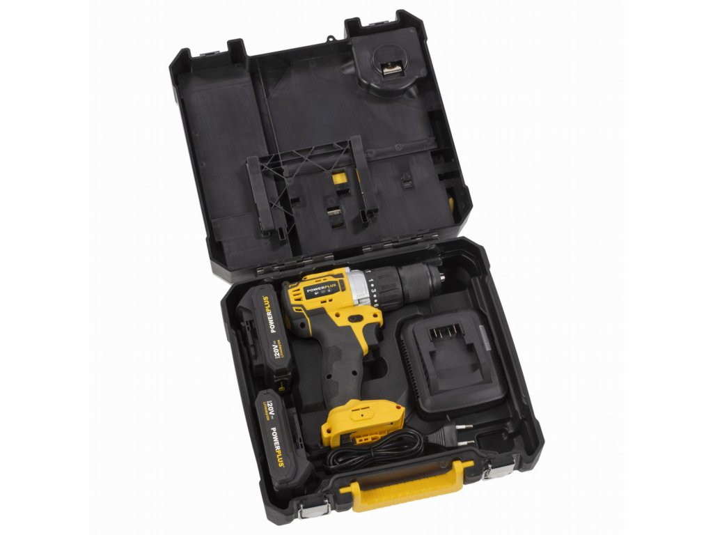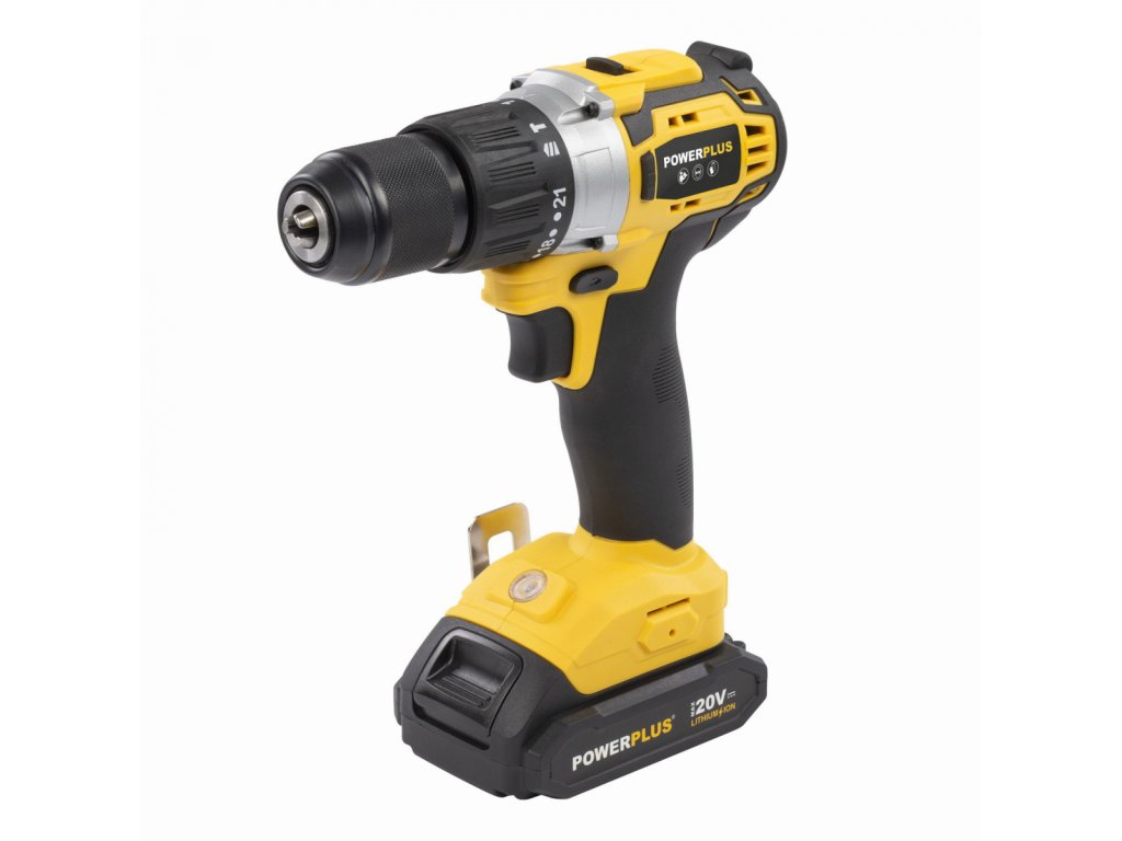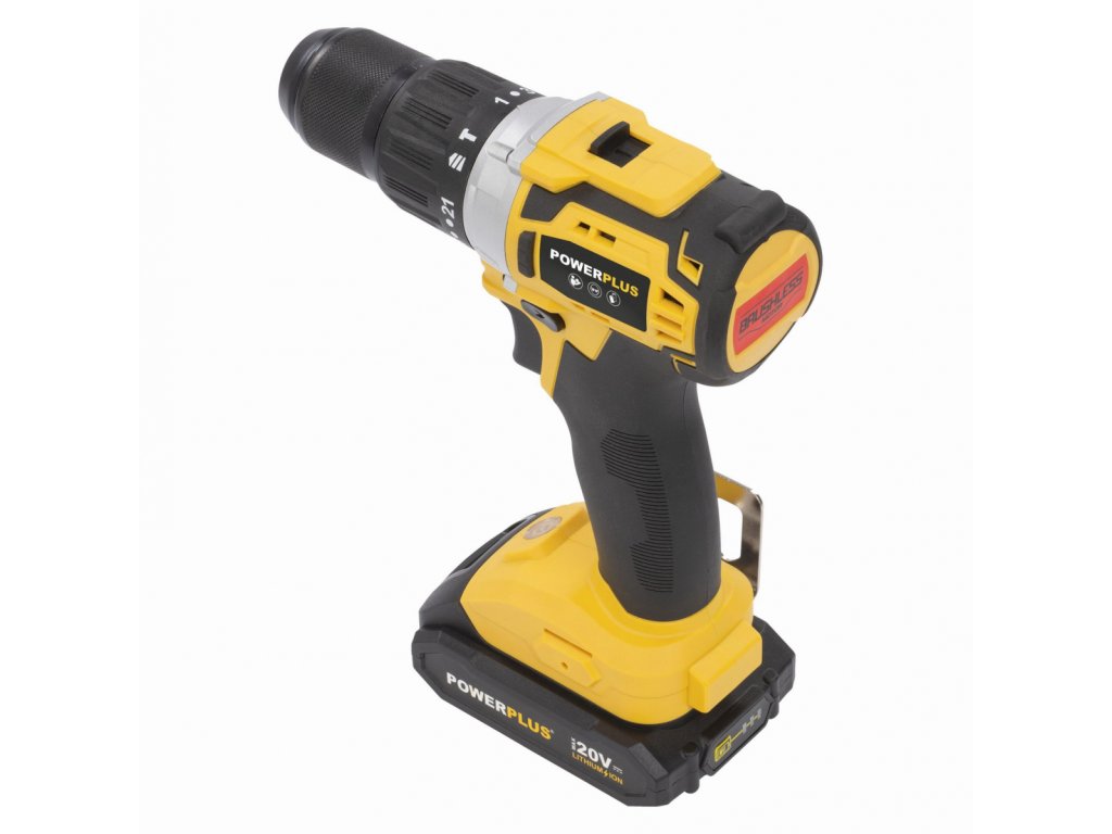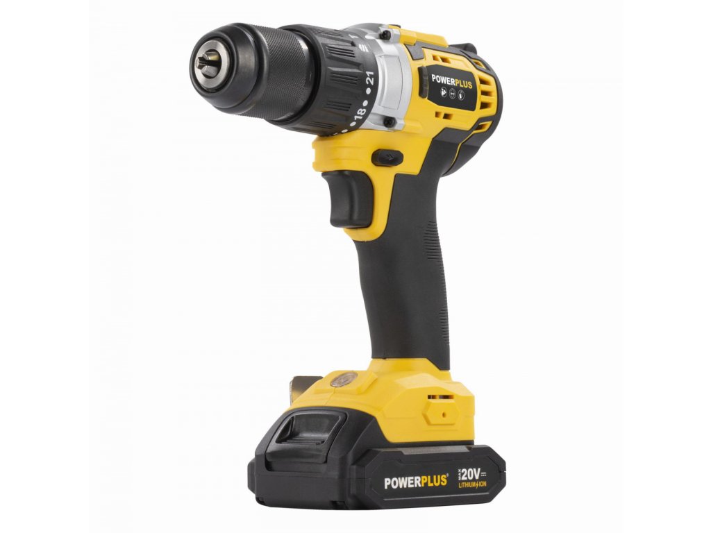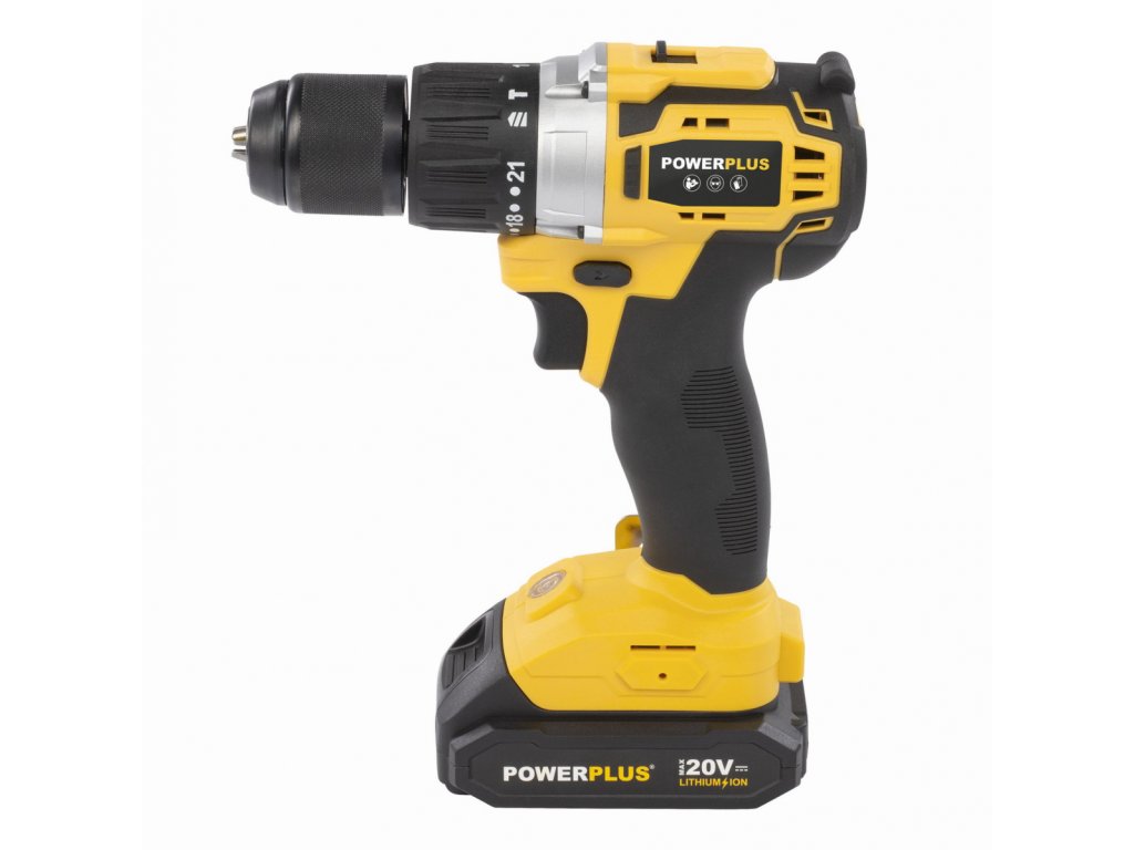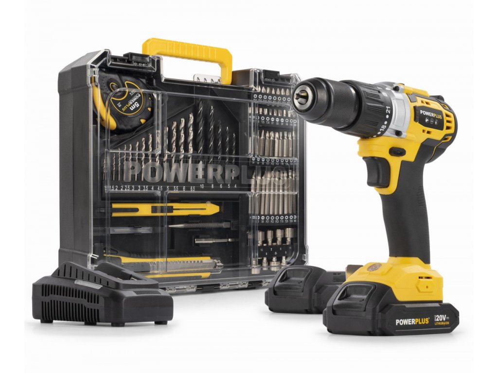 Tato 20V akumulátorová bezuhlíková příklepová vrtačka POWX00850 od Powerplus je všestranný pomocník pro většinu šroubovacích a vrtacích prací v domě a kolem něj. Směr otáčení lze změnit stisknutím tlačítka. Vrtačka/šroubovák má dva převody s maximální rychlostí otáčení 600 až 2.000 otáček za minutu což umožňuje stroji dosáhnout maximální kapacity vrtání prům.38 mm do dřeva a prům.13 mm do oceli. Rychloupínací kovové sklíčidlo 13 mm zajišťuje nezbytnou jednoduchost použití. Motor poskytuje maximální utahovací moment 60 Nm. Díky 23 nastavením krouticího momentu lze stroj snadno přizpůsobit jakémukoli šroubování a vrtání. Pracovní světlo poskytuje dostatek světla pro dobrou práci i na špatně osvětlených místech. Vrtačka/šroubovák se dodává v praktickém úložném kufříku s celkem 78ks příslušenství. Součástí stroje jsou 2 baterie a rychlonabíječka. Každá baterie má kapacitu 2.000 mAh. Součástí je také rozsáhlá sada šroubovacích bitů a vrtáků, praktické ruční nástroje, jako je nůž a metr.