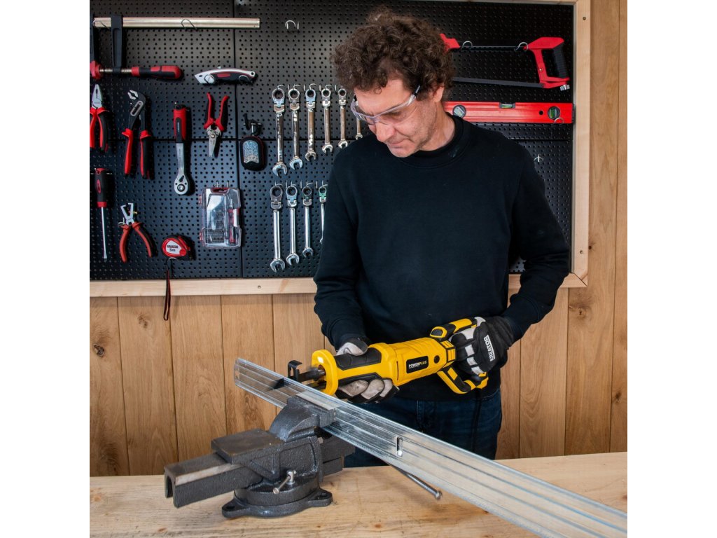 S touto ocasovou pilou POWX03971 od Powerplus se můžete spolehnout na hrubé řezy pilou, prořezávání a dokonce i na demoliční práce. V kombinaci se správným pilovým plátkem dokáže bez námahy proříznout různé materiály. Tato výkonná 920W ocasová pila je ideální pro řadu vašich projektů, od řezání trubek po řezání dřevěných prken. Při maximální rychlosti otáčení 3000 min-1 můžete řezat až 150 mm do dřeva, 100 mm do syntetických materiálů a 10 mm do oceli. Vyberte si rychlost otáčení mezi 0 min-1 a 3000 min-1 pomocí elektronické regulace rychlosti a dokonale přizpůsobte tento nástroj potřebám vašeho projektu. Otočná rukojeť umožňuje pohodlnou práci bez namáhání zápěstí nebo rukou, a to i při delší práci. Úhel otočné patky můžete snadno nastavit tak, aby efektivně kopíroval tvar vašeho obrobku. Stroj je vybaven ochranou proti přetížení, zabraňuje přehřátí a přetížení elektromotoru. Automaticky vypne motor, když dojde k prudkému zvýšení teploty. Odlehčení tahu kabelu s kulovým kloubem poskytuje optimální ochranu kabelu bez ztráty flexibility. Výměna pilových plátků je rychlá a snadná díky systému rychlé výměny plátků. Měkčený materiál rukojeti poskytuje pohodlný úchop a uživatelský komfort, takže s touto přímočarou pilou můžete pohodlně pracovat i po delší dobu. Praktické pracovní světlo poskytuje vždy jasný výhled na váš obrobek.
