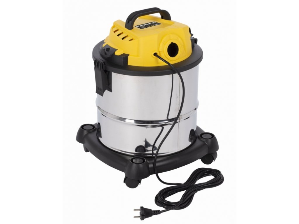 Vysavač sucho/mokro 1 200 W . , Napětí - 220 - 240V / 50Hz, Příkon - 1.200 W, Objem nádrže - 20 l, Sací výkon - 16 Kpa, Délka hadice - 3 m, Délka el. kabelu - 5 m, Hmotnost - 5 kg...