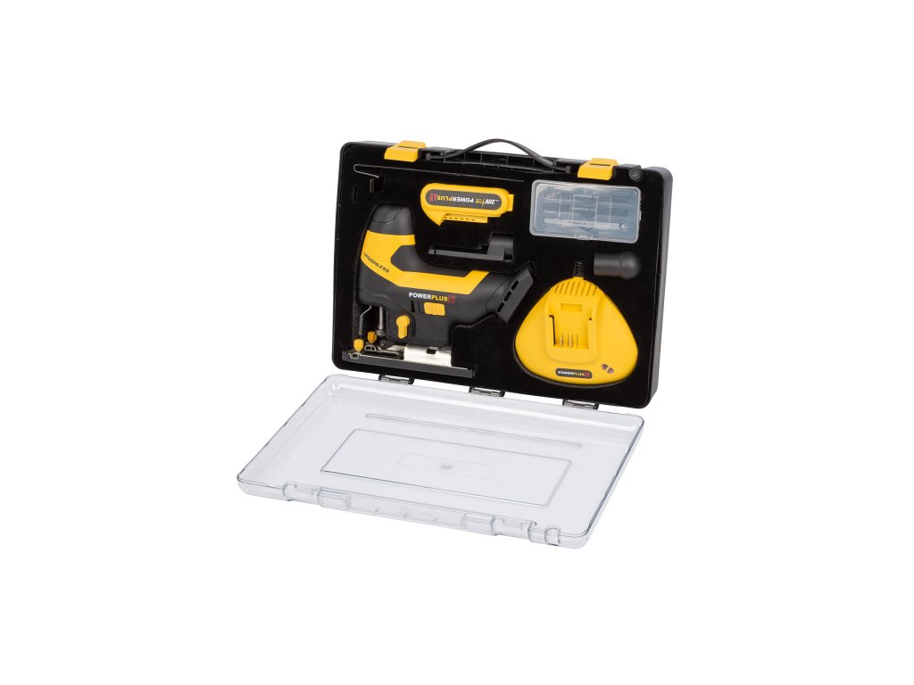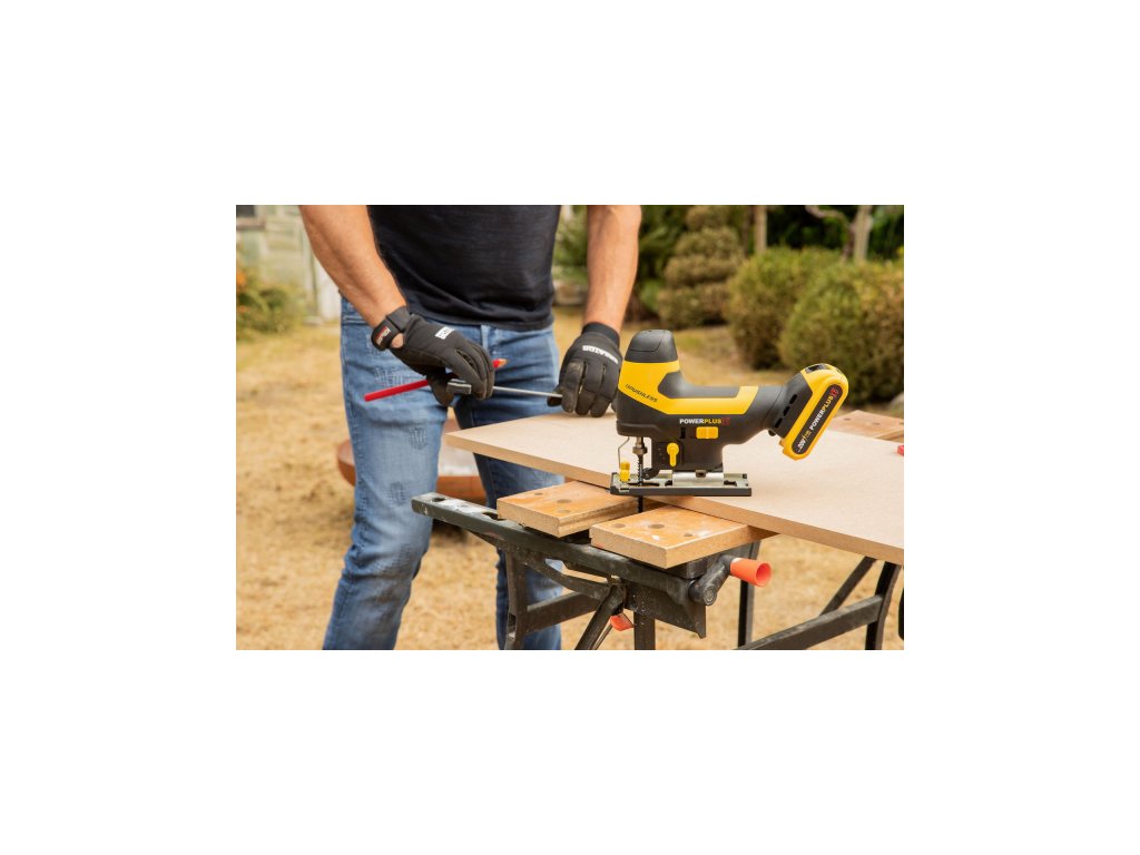 Tato kompaktní akumulátorová přímočará pila POWXB50020 z řady POWERPLUS XB s napětím 20 V se ideálně hodí pro všechny řezání v domě a kolem domu. Vyznačuje se výkonným a extra odolným bezuhlíkovým motorem. Motor produkuje až 3000 zdvihů za minutu a nastavení 4 pozic předkmitu. Tato přímočará pila má řeznou kapacitu 100 mm ve dřevě, 10 mm v plastu a 6 mm v oceli. Základnu lze naklonit až o 45 st, což vám umožní provádět malé zkosené řezy. Se systémem rychlé výměny pilového listu lze pilový list vyměnit mrknutím oka. Přímočará pila je také vybavena odsávacím adaptérem na prach, který vám při práci umožňuje udržovat jasný výhled na výrobek. Tento stroj se dodává v praktickém úložném kufříku, včetně nabíječky, baterie 2,0 Ah, a příslušenství.