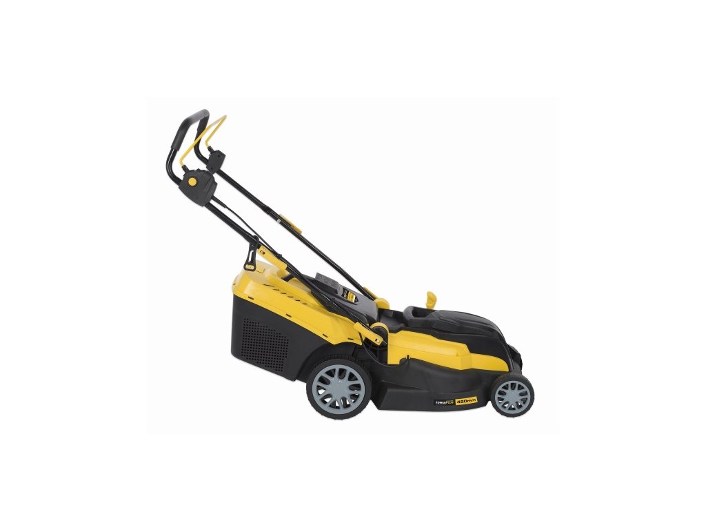 Elektrická sekačka 2000W 420mm. , Napětí - 230 - 240V / 50Hz, Příkon - 2.000 W, Otáčky naprázdno - 3.450 min-1, Záběr sečení - 420 mm, Centrální nastavení výšky - 25-80 mm, Objem koše - 40 L, Velikost předních kol - 150 mm, Velikost zadních kol - 225 mm, Hmotnost - 13,5 kg...